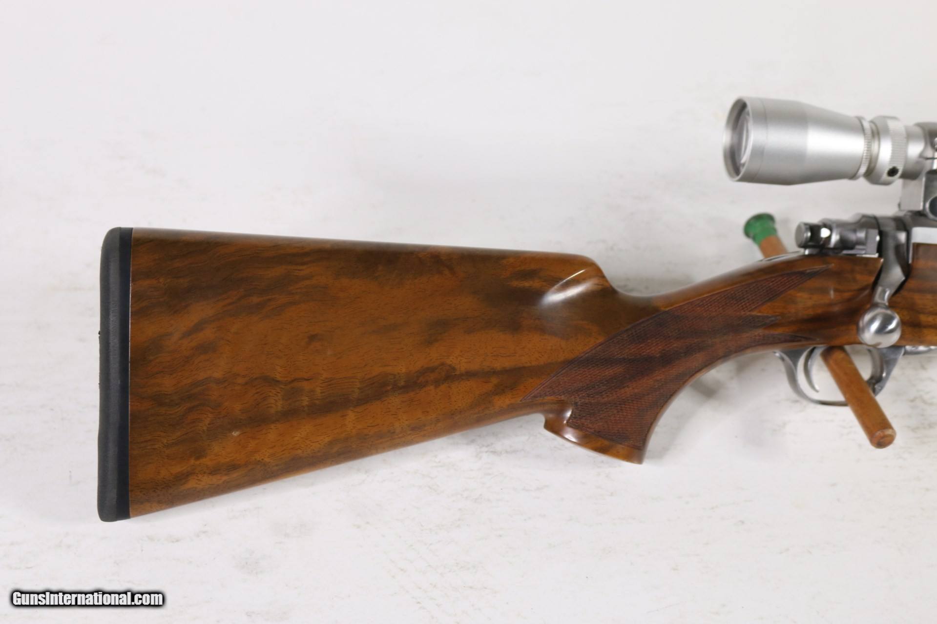 Description: MADE IN THE USA. CUSTOM STOCK FROM WENING. INCLUDES 3X9 VARI-X II BY LEUPOLD. 98% CONITION. GREAT ADDITION TO ANY COLLECTION. PLEASE ADD $40 FOR SHIPPING. RETURN POLICY: We offer a 3 day return policy. Items must be returned in the same condition as received. Notification must be made with-in 3 days of receipt at dealer. All fees are non-refundable no exceptions. LAY-A-WAY: We offer a 60 day lay-a-way with a 1/3 up front and 1/3 every 30 days. Once started all sales are final with no exceptions. CONDITIONS OF SALE: Art’s Gun Shop makes no express or implied warranty or representation with respect to items being advertised or sold. In no event shall Art’s Gun Shop be held responsible for correctness of description, representation, or warranty of items sold by them or their representatives. All items sold as collector items. All liability concerning the use of any weapons purchased from Art’s Gun Shop or its representatives is assumed by the purchaser. CONSIGNMENTS: We do not take consignments, but we are strong buyers for collections. We are near the St. Louis area and can travel to the most of the Midwest. Feel free to call 636-944-3630 with any questions. SOLD Manufacturer: BROWNING Condition: EXCELLENT Metal Condition: EXCELLENT Wood Condition: VERY GOOD Bore Condition: EXCELLENT Action: BOLT LOP: 12 3/4'' Weight: 7 LB 2 OZ Extras: SCOPE AND MOUNTS |