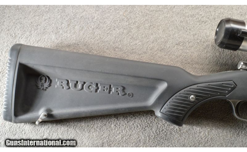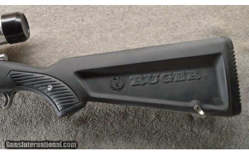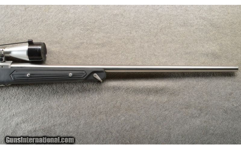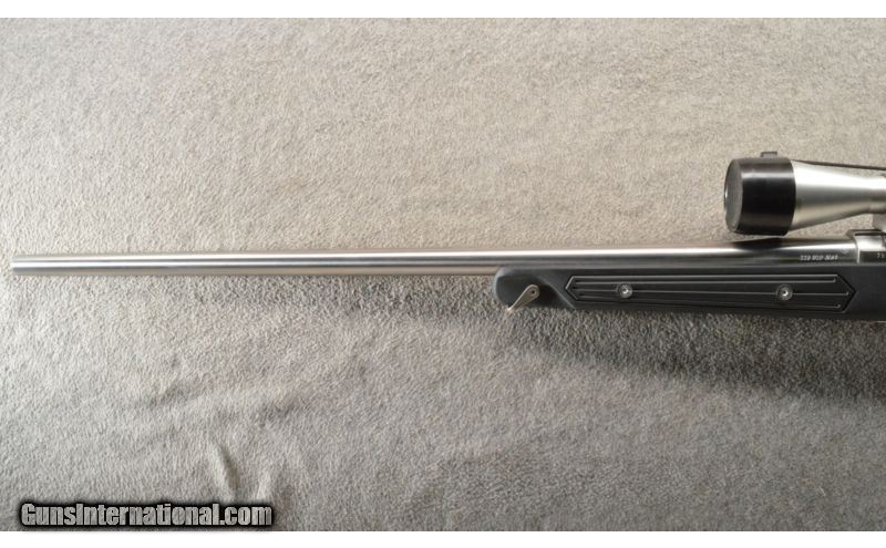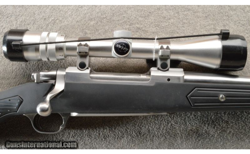 Description: This is a hard to find Ruger Mark II All Weather Stainless in .338 Win Mag. The metal parts are stainless steel including the Ruger scope rings and Swift scope. The stock is a black DuPont Zytel synthetic with a textured pistol grip and stainless sling mounts. The rifle has been fired very little and still looks like new inside and out. SOLD Caliber Info: .338 Win Mag. Chambers: Bolt action repeater Metal Condition: Excellent. Wood Condition: The stock is excellent. Bore Condition: Bright and shiny. Barrels: 24 inch stainless steel. Triggers: Single stainless steel. Stock: Black DuPont Zytel synthetic with a textured pistol grip and stainless sling mounts Stock Dimensions: 13 5/8 inch LOP. Fore End: Matching with black synthetic inserts. Butt Pad: Black rubber butt pad. Weight: 8 Lbs. 11 Oz as pictured with the scope. Sights: Swift 3-9X40 rifle scope. Extras: Comes with the rings and Swift scope. Item Location: Owatonna, MN |