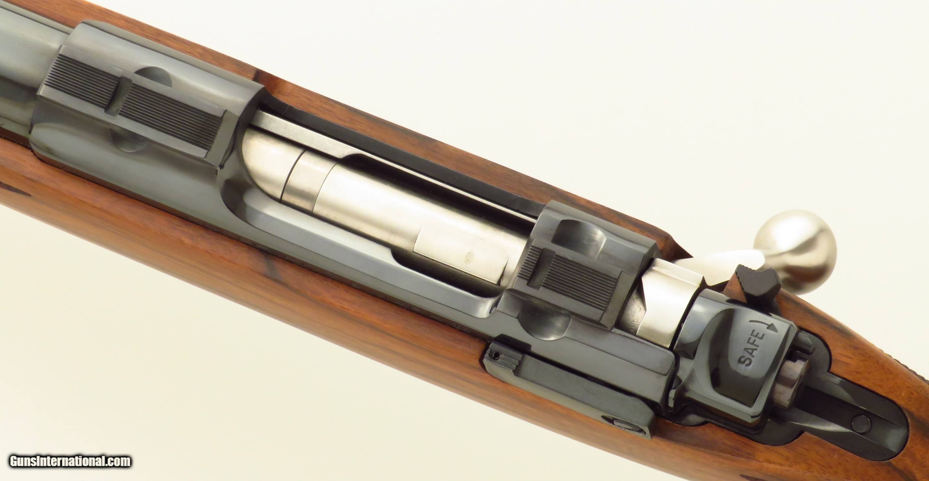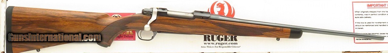 Description: Ruger Model 77 Lightweight Deluxe .308 Winchester. Made circa 2007 and originating from a limited edition of 200 rifles commissioned by Talo, serial 792-34247 has a 20-inch barrel (.505-inch muzzle diameter). Features include a polished blue finish, integral mounts, stainless steel bolt body and handle, three-position safety and a Circassian walnut stock. DIMENSIONS: Weight is 6.2 pounds and the length-of-pull is 13.55 inches. CONDITION: Likely unfired since proof and certainly never taken afield, the bore is pristine. Metal is approximately 99 percent with two light scratches on the bolt release lever and trace packaging rubs on the bolt knob. Wood is pristine. INCLUSIONS: The original box with ring mounts (one inch) and papers is present. The price is firm and layaway is available. $2,250 plus shipping. Rifle Caliber: .308 Winchester Price: $2,250.00 Shipping: $110.00 Contact Seller |
