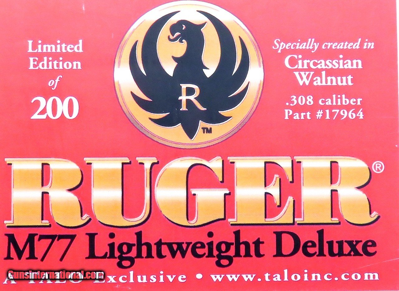 Ruger 77 Mark II Lightweight Deluxe .308 Winchester, 2007 Talo limited edition of 200, Circassian, box, likely unfired, layaway