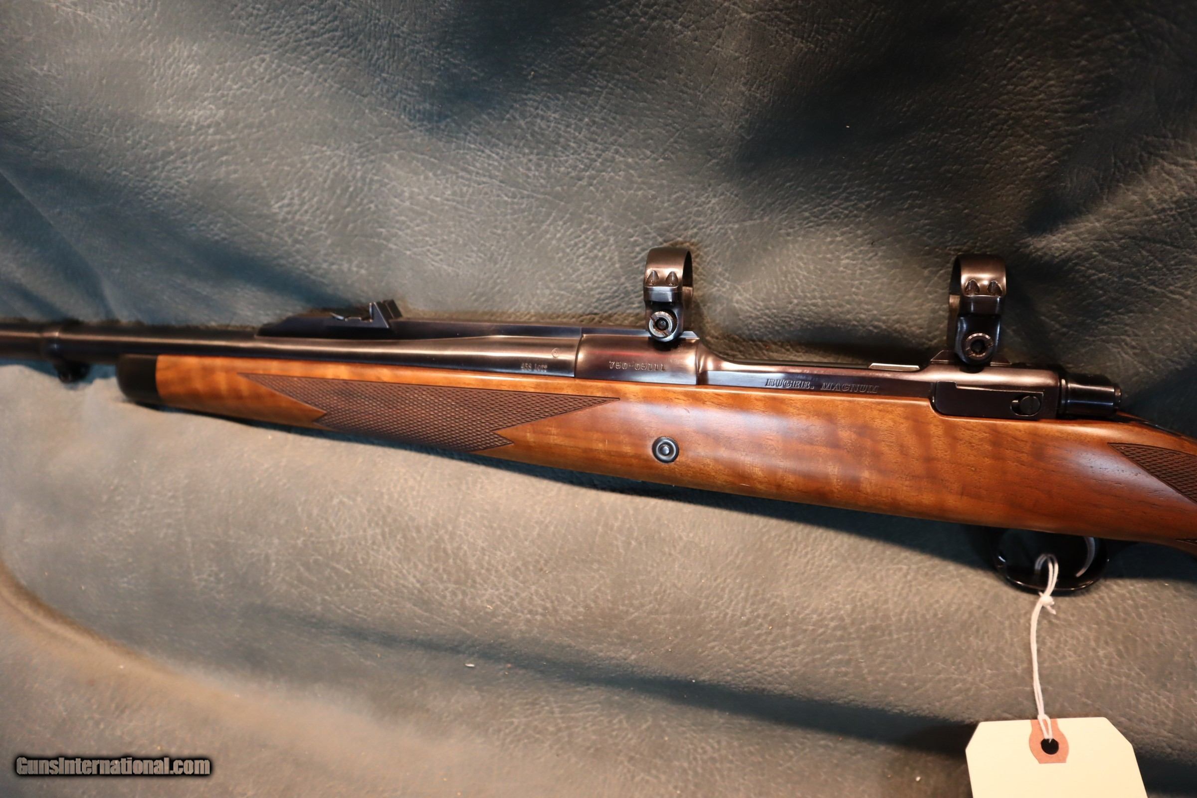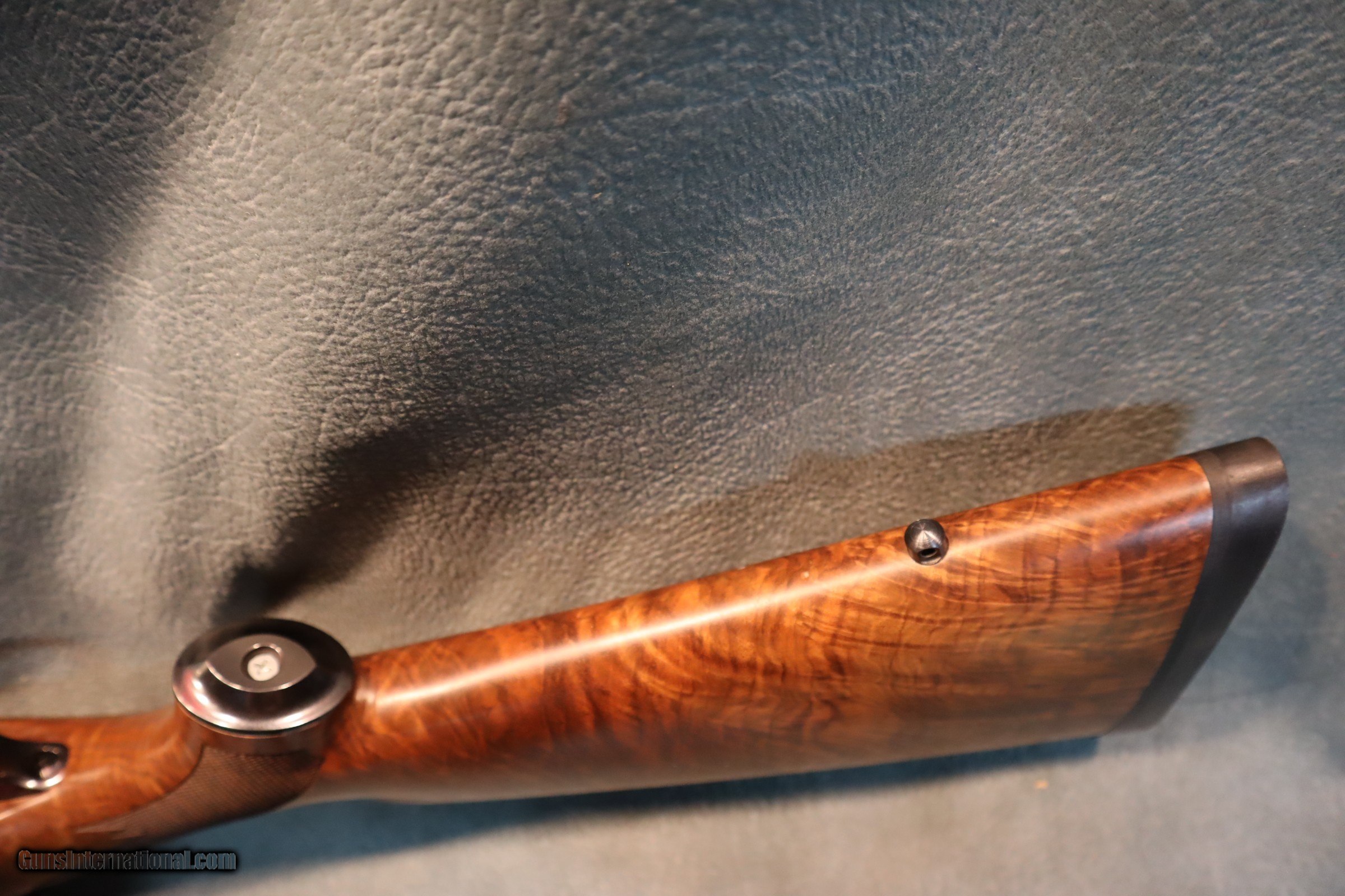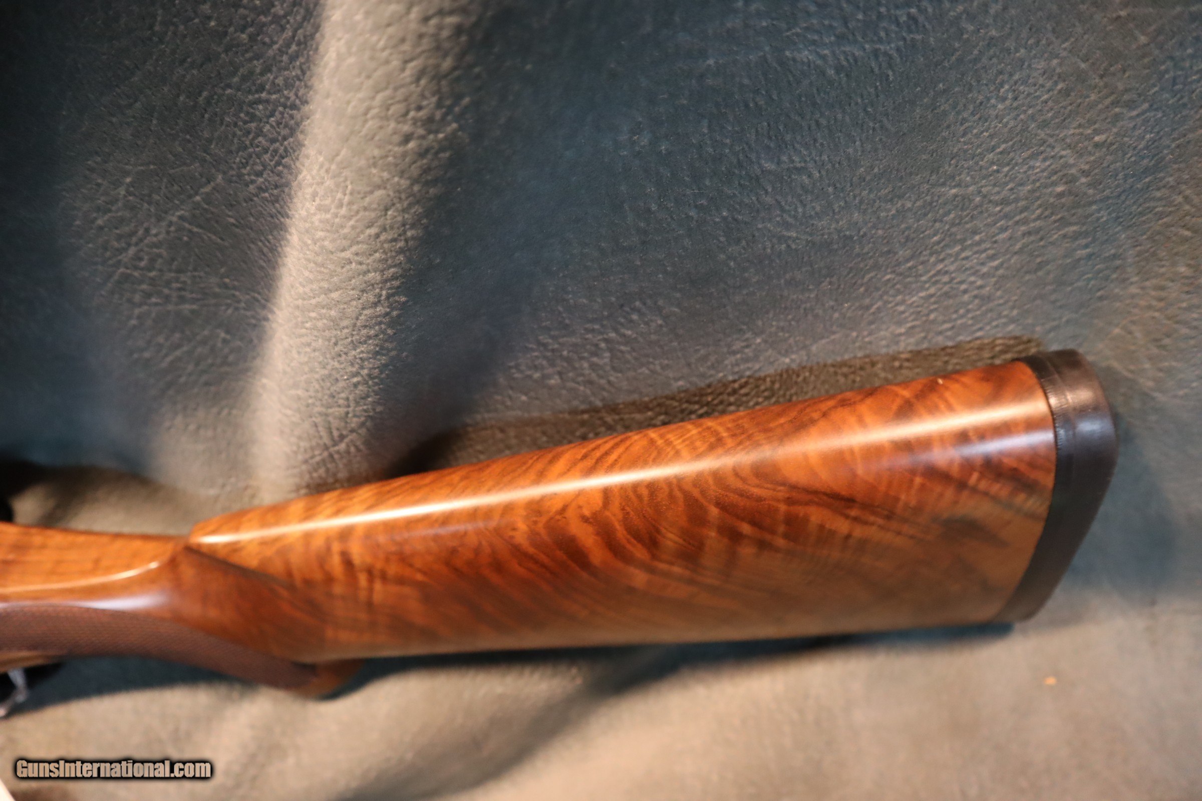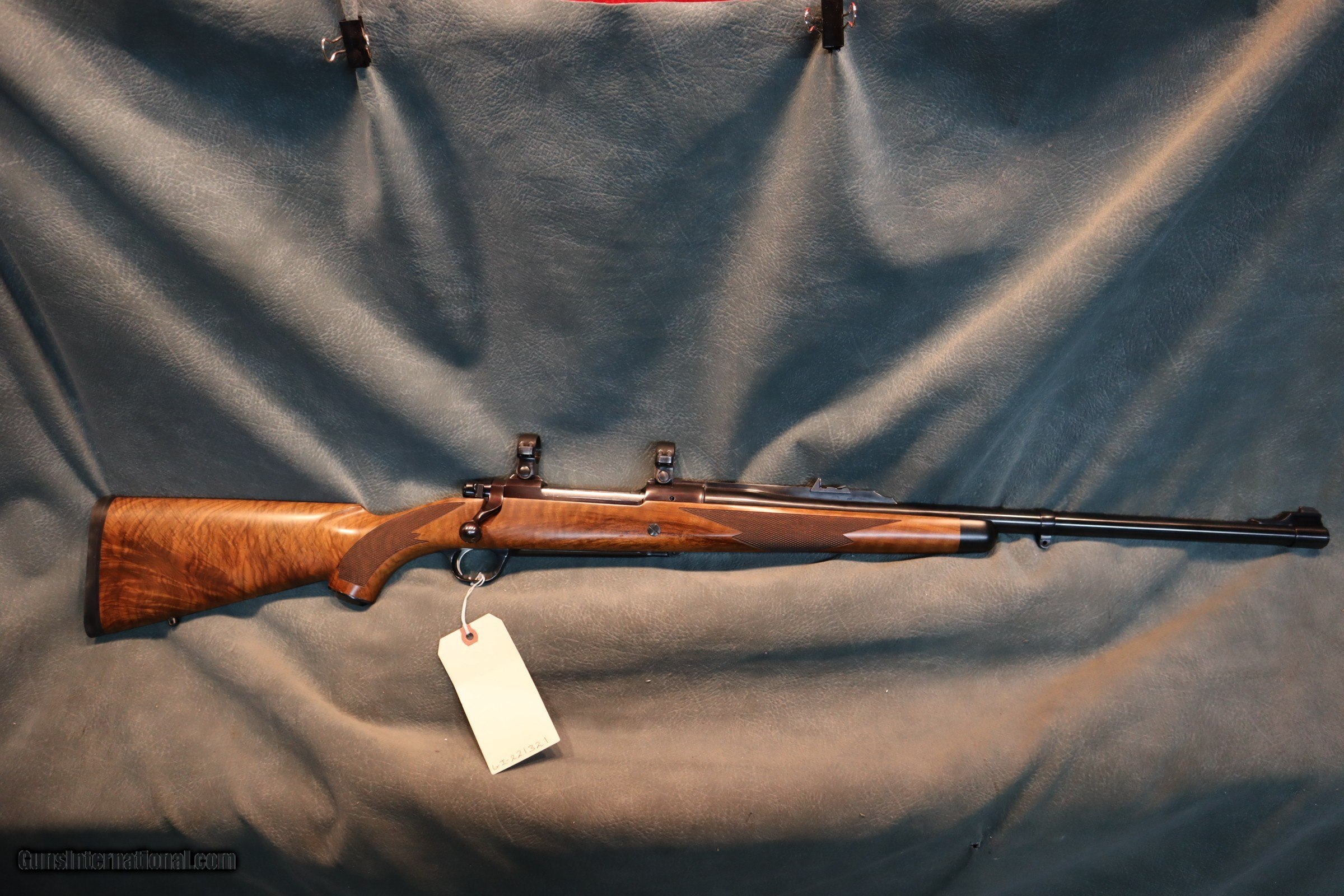 Description: Ruger 77RSM African Express 458Lott 23" barrel with quarter rib rear sight with 1 standing and 2 folding sight blades,banded front sight,Outstanding walnut stock with great figure!!! GUN COLLECTIONS WANTED FOR CASH! We buy, sell, consign and trade new and used firearms.We will pay finders fees and travel for large collections. This is our 47th year in business. We offer 90 day layaways with 20% down. No return on layaways. Firearms will need to be transferred through a FFL dealer. Prices reflect a cash discount. There will be 3% added to credit card sales. We trade for gold and silver. THANK YOU! SOLD |