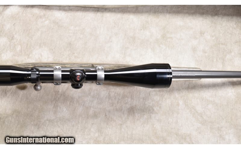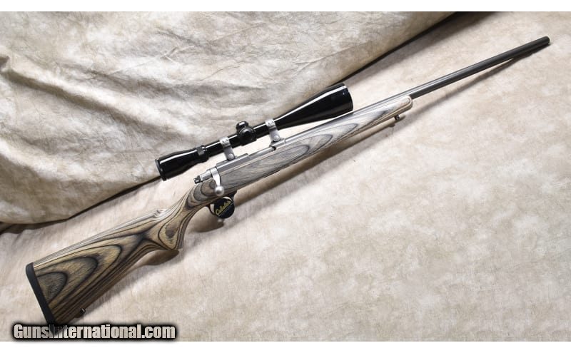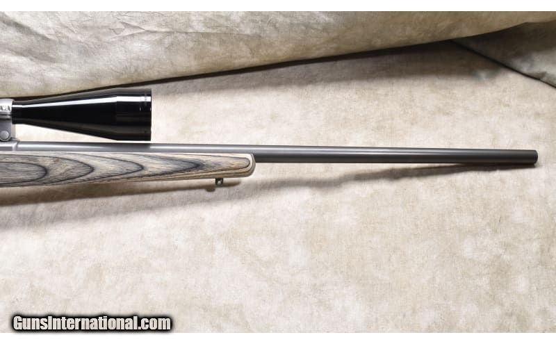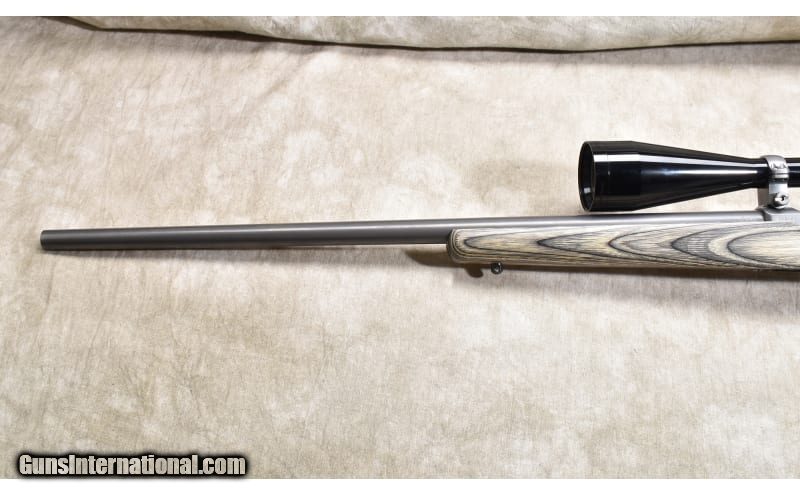 Description: This excellent Model 7/17 features All-weather grey stainless steel, laminated hardwood stock, and an overall length of 43 inches. It was manufactured in 2002 and is in excellent condition. Suitable for all forms of varmint control. .17 HMR SOLD Chambers: 9 round detachable rotary magazine. Metal Condition: Excellent. Wood Condition: Excellent. Bore Condition: Shiny and bright with good rifling. Barrels: 24-inch grey finish Triggers: Factory trigger. Stock Dimensions: 13-5/8 inch LOP. Butt Pad: Rubber pad. Weight: 8 lb - 14 oz. with scope Sights: Set up for scope and outfitted with a Nitrex TR ONE 3-10x50mm scope. Item Location: Rogers |