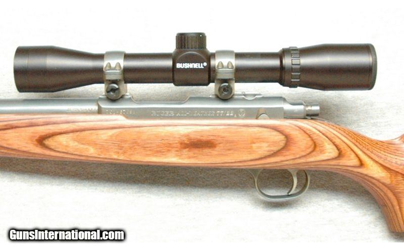 Description: Ruger All-Weather 77/22 Rifle. Very good condition with one mag. Smooth action, crisp trigger pull, laminated stock. A good choice for small varmint hunting. .22 MAG SOLD Chambers: Bolt action Metal Condition: Very good Wood Condition: Very good Bore Condition: Bright Barrels: 24 Triggers: Factory trigger Stock Dimensions: 13 1/2" LOP Fore End: Smooth Butt Pad: Factory pad Sights: Bushnell 4x scope Item Location: La Vista, NE |