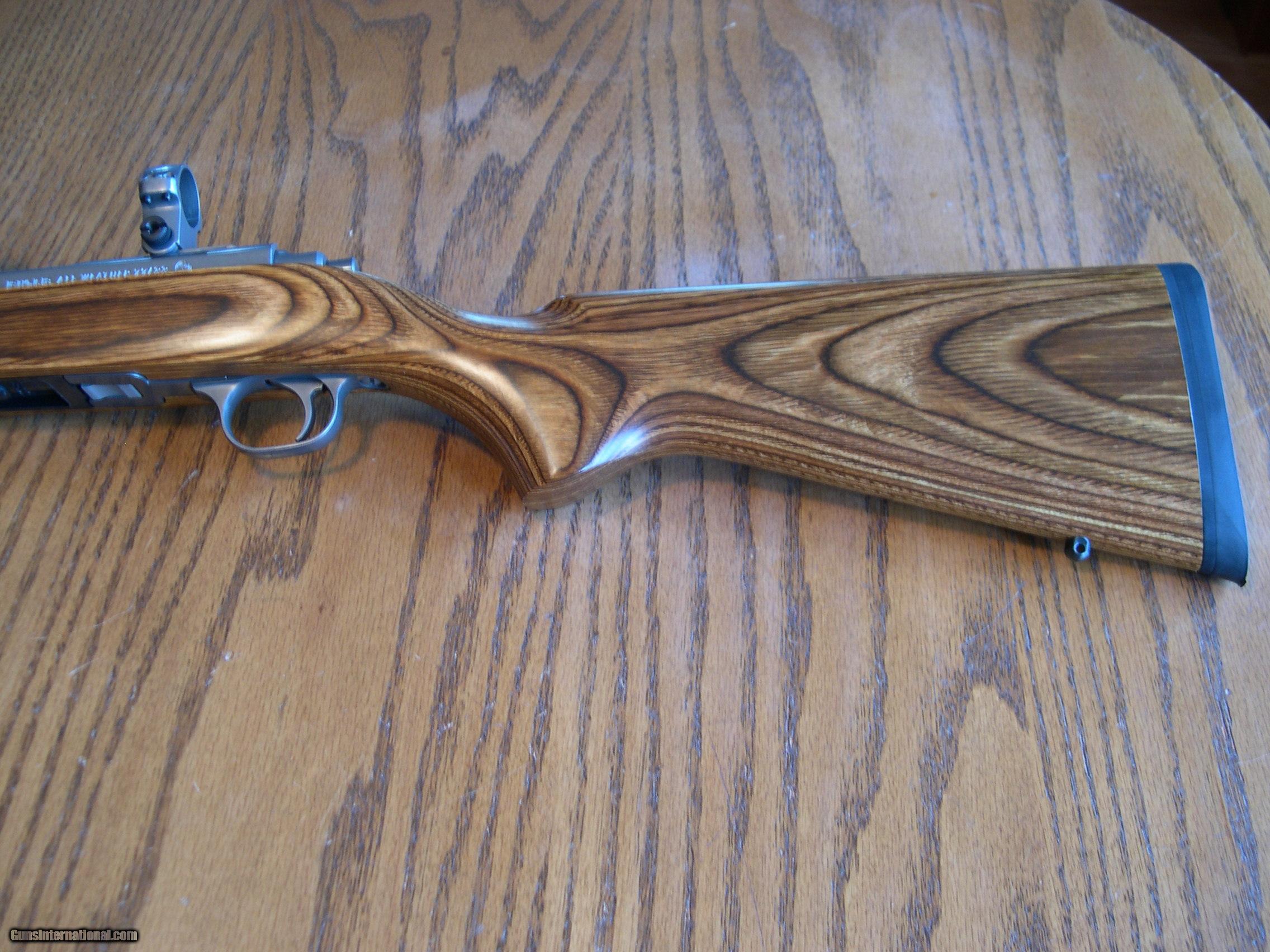 Description: This is the All Weather rifle with Laminated stock and all weather barrel with no sights, comes with original scope mounts and rings, unfired new no Box, one magazine. Mint condition!!! SOLD |