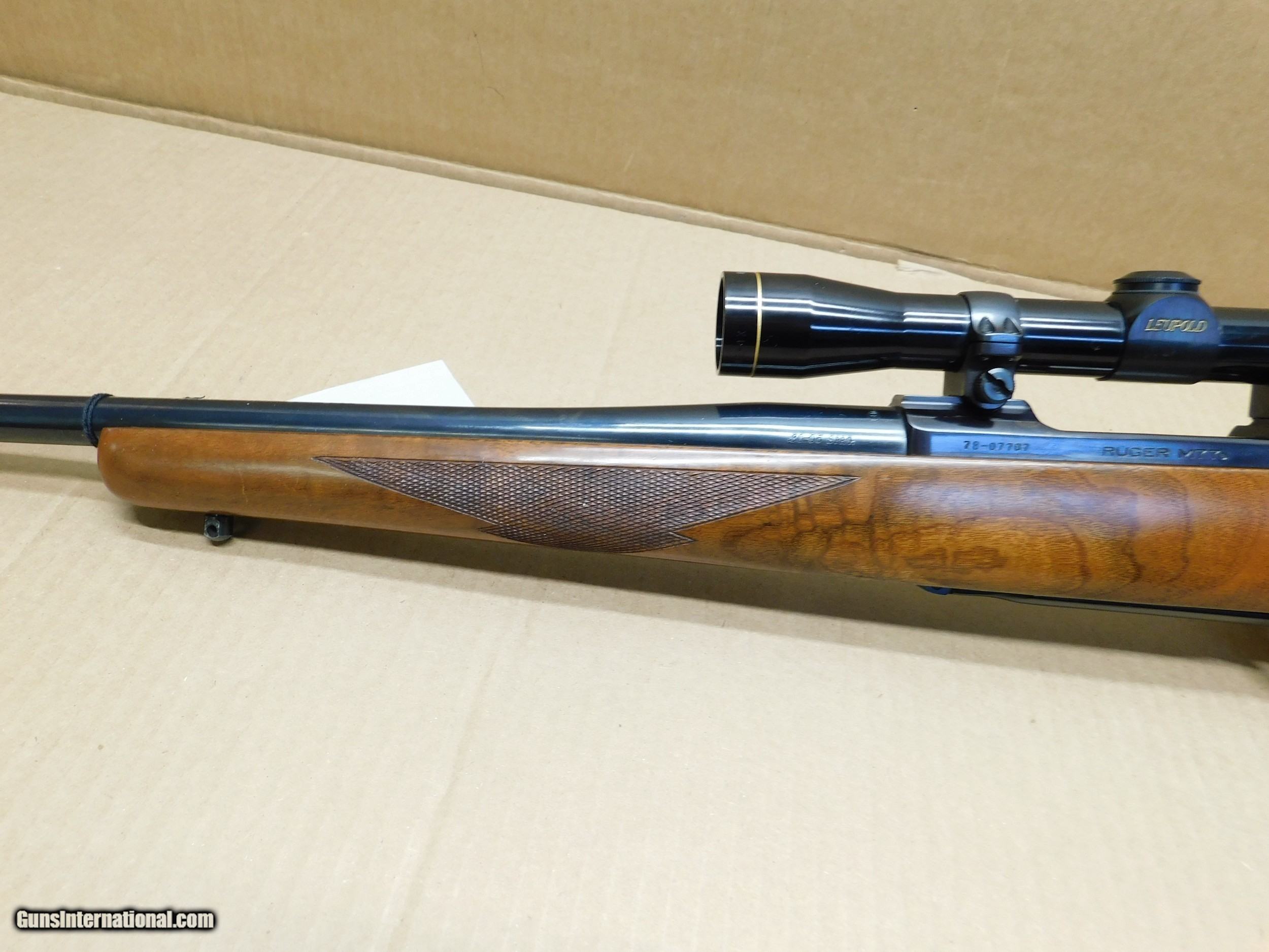 Description: This is a used Ruger M-77 bolt action 30-06 rifle It is a 4+1 shot with a 22" blued barrel Has a red pad, tang safety, Leupold M8 4 pwr scope Mfg in 1984 SN-78-07707 SOLD Rifle Caliber: .30-06 Springfield Manufacturer: Ruger Model: M77 Serial Number: 78-07707 Barrel Length: 22 Condition: Used Metal Condition: Very Good Wood Condition: Very good Bore Condition: Very good Barrels: Blue Barrel Type: Round Action: Bolt Stock: Checkered Walnut with sling studs Butt Pad: Red Rubber Finish: Blue Manufacture Date: 1984 Extras: Tang Safety |