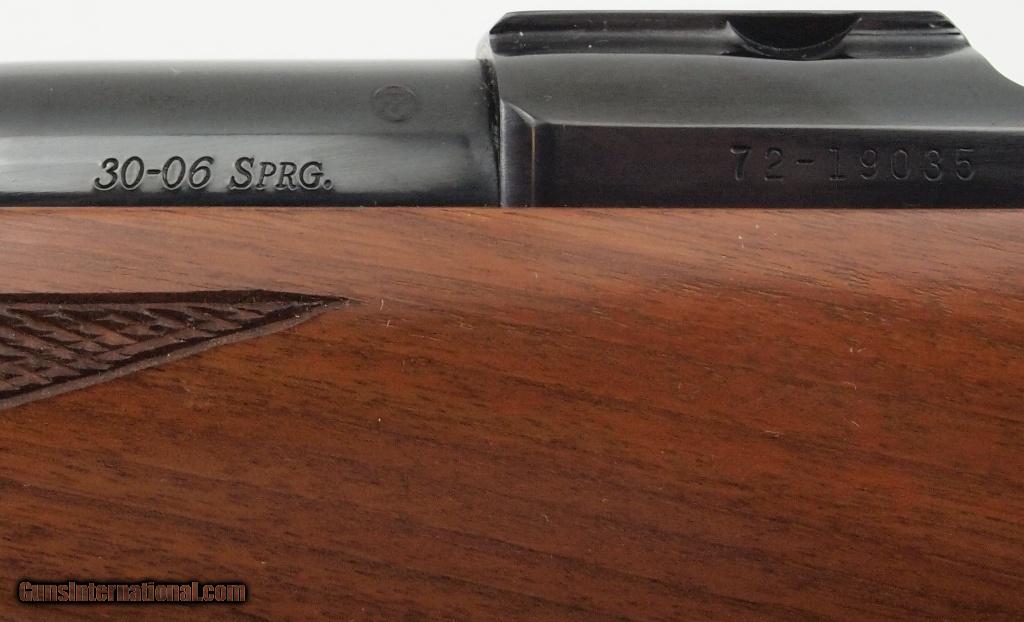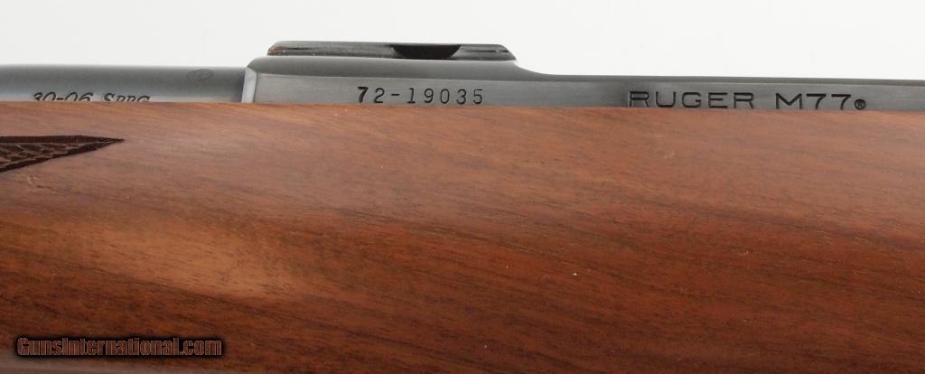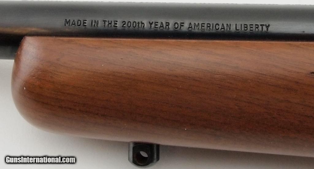 Description: Ruger M-77, .30-06 SPRG, 22" bbl, bright shiny bore, good rifling, no sights, ready for your rings and scope, blued finish, very nice checkered wood stock, removed slight surface rust on bolt, and Ruger red rubber recoil pad. This rifle is in very good to excellent condition. "MADE IN THE 200TH YEAR OF AMERICAN LIBERTY" is stamped on the left side of the barrel. Add 3% for Credit Card Shipping $25.00 SOLD |