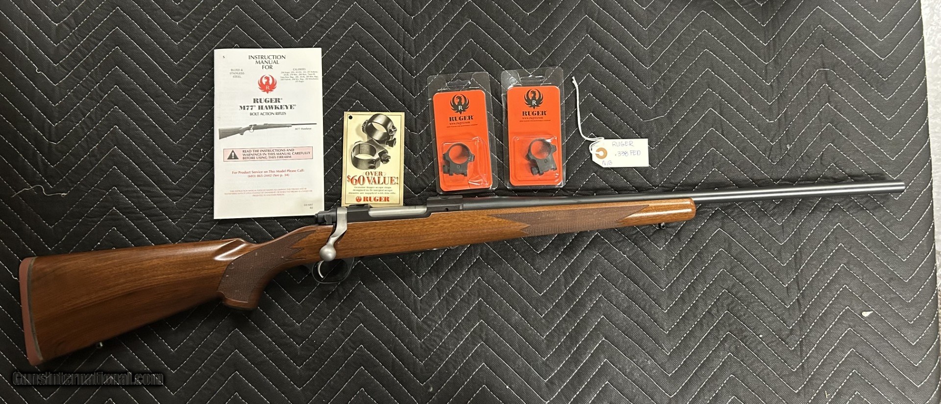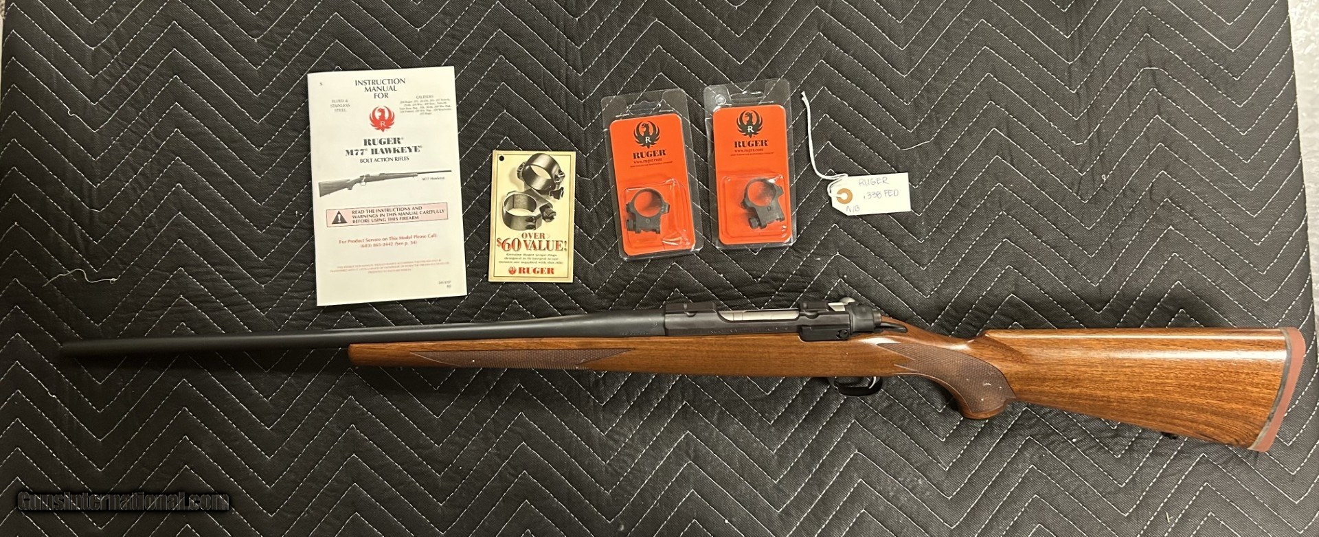 Description: Guns Listing ID: 1351976 RUGER M-77 HAWKEYE - .338 FEDERAL - 4 ROUNDS - 22 \" NEW IN BOX (D20 STORE LOCATION) SOLD Manufacturer: RUGER Model: M-77 HAWKEYE Caliber Info: .338 FEDERAL Condition: Used - Non-Certified Barrels: 22 BARREL |