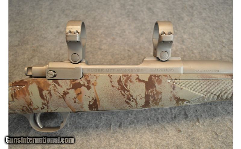 Description: Ruger M-77 Hawkeye chambered in 6.5 Creedmoor Overall this rifle is in excellent condition. This rifle come equipped with a 24 in threaded barrel, a Hawkeye matte stainless steel barrel, cold hammer-forged barrel, three-position safety, a non-rotating, Mauser-type controlled round feed extractor, integral scope mounts and a StockNatural Gear camo hardwood finish. 6.5 Creedmoor SOLD Metal Condition: Very good; handling marks on barrel Wood Condition: Excellent; synthetic stock with no scratches or dings Bore Condition: "Very good; clean bore, strong and shinny rifling Barrels: 24 Triggers: 3.7 lb pull Stock Dimensions: 13 3/4 LOP Fore End: Synthetic Butt Pad: Soft rubber butt pad with spacers Weight: 8 LBS Sights: Integral scope mounts Chokes: Threaded muzzle cap Item Location: Sidney, NE |