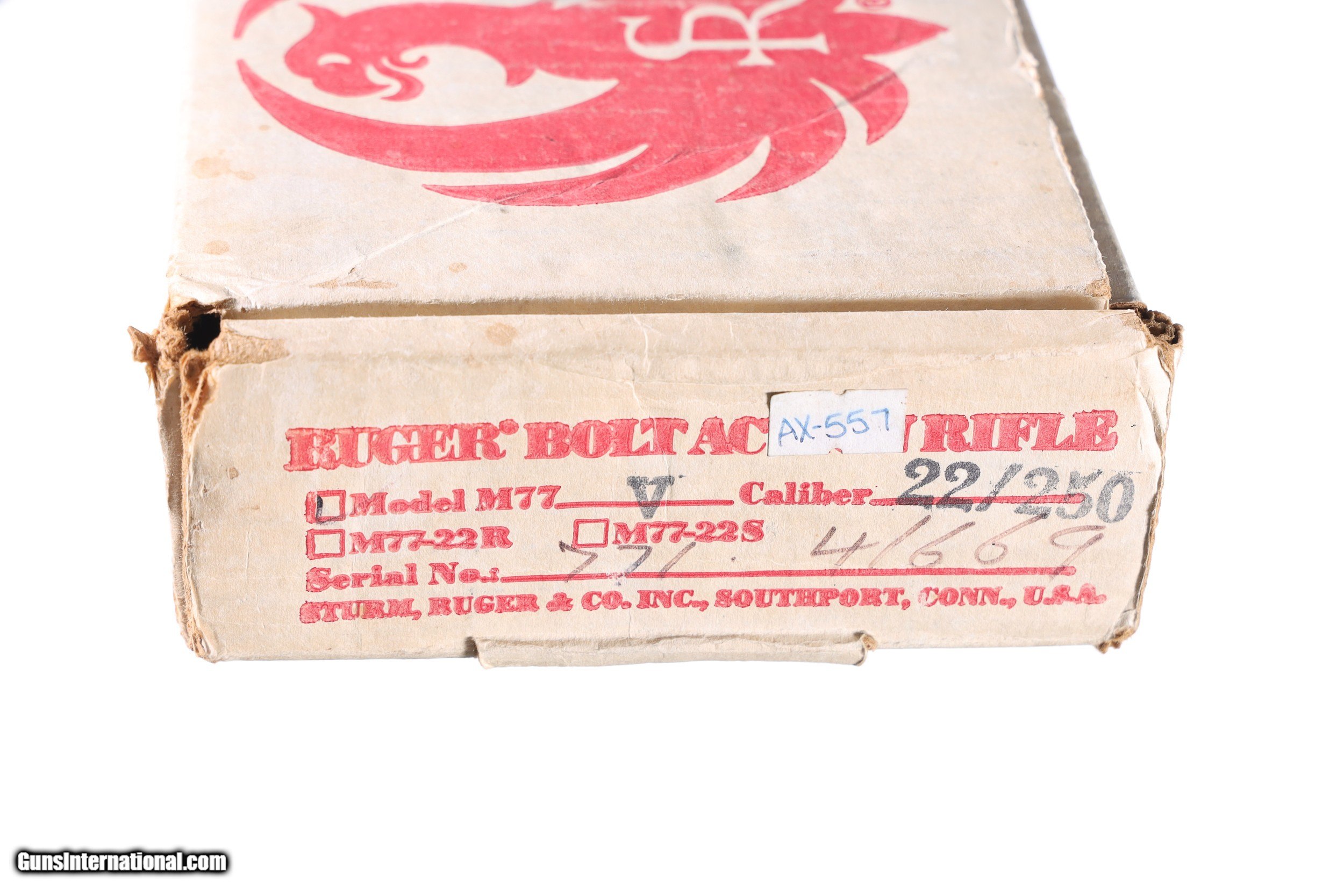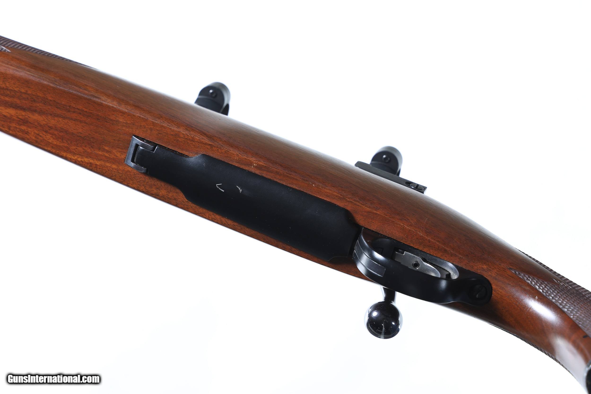 Description: Excellent plus overall condition, limited handling marks with light scratch in floorplate. Limited use. In factory box numbered to gun. Mfd 1988 Tang Saftey Free Shipping, No Credit Card Fees! SOLD Manufacturer: Ruger Model: 77 Serial Number: 771-41669 Caliber Info: .22-250 rem Barrels: 24 |