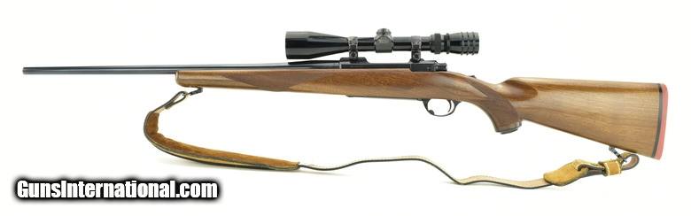 Ruger M77 .22-250 caliber rifle. Early flat bolt rifle. The metal is excellent, the stock has some light marks. Has a 3-9X Weaver scope.