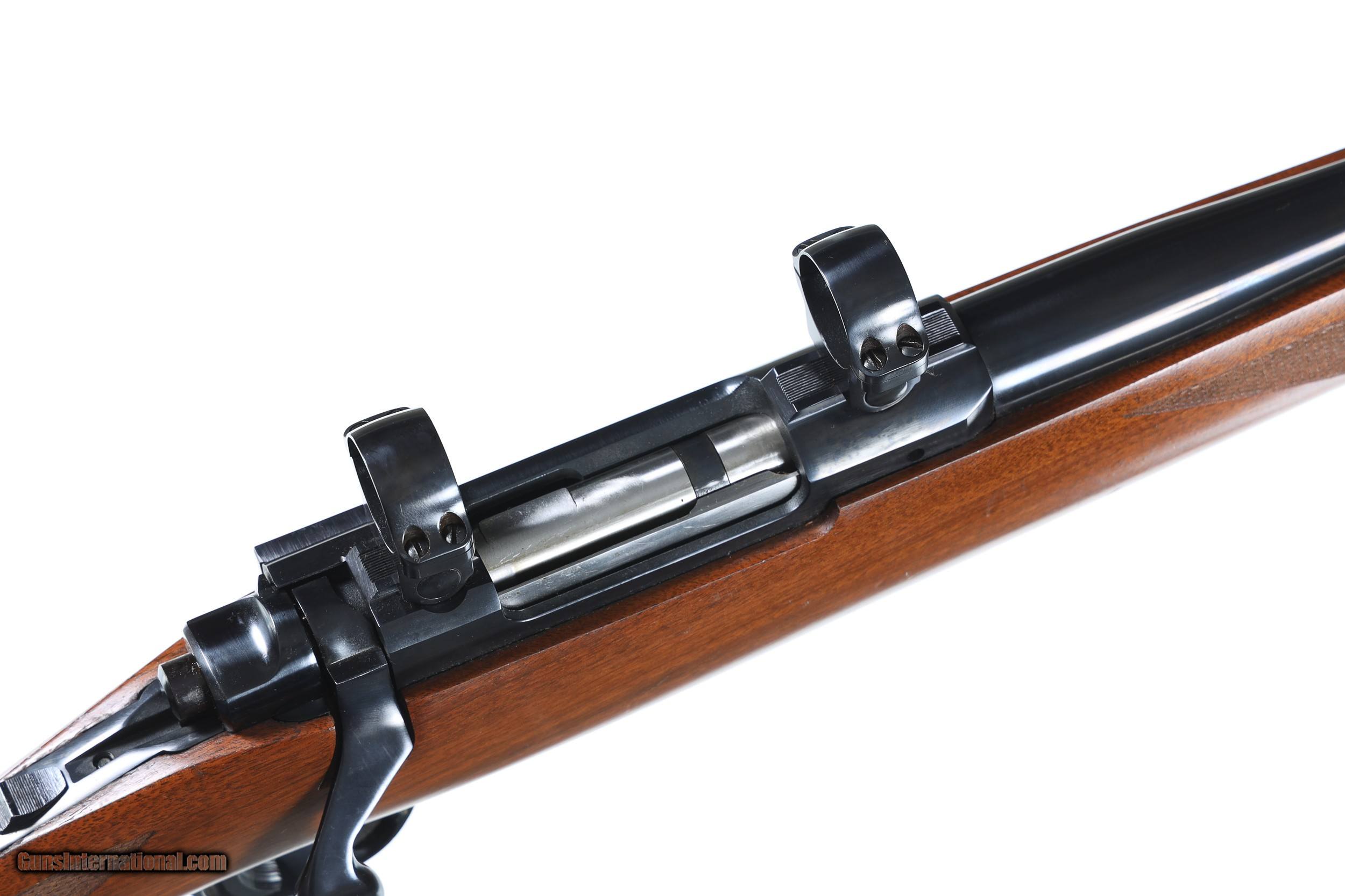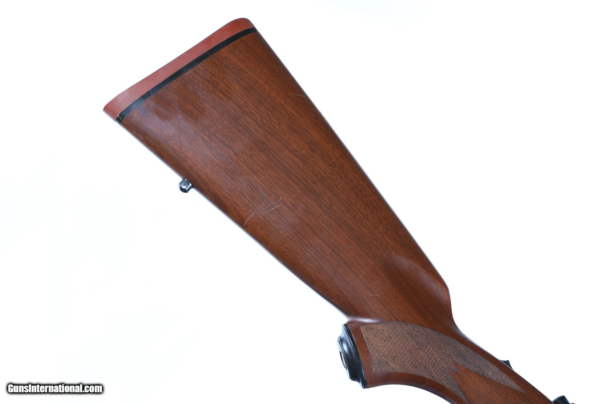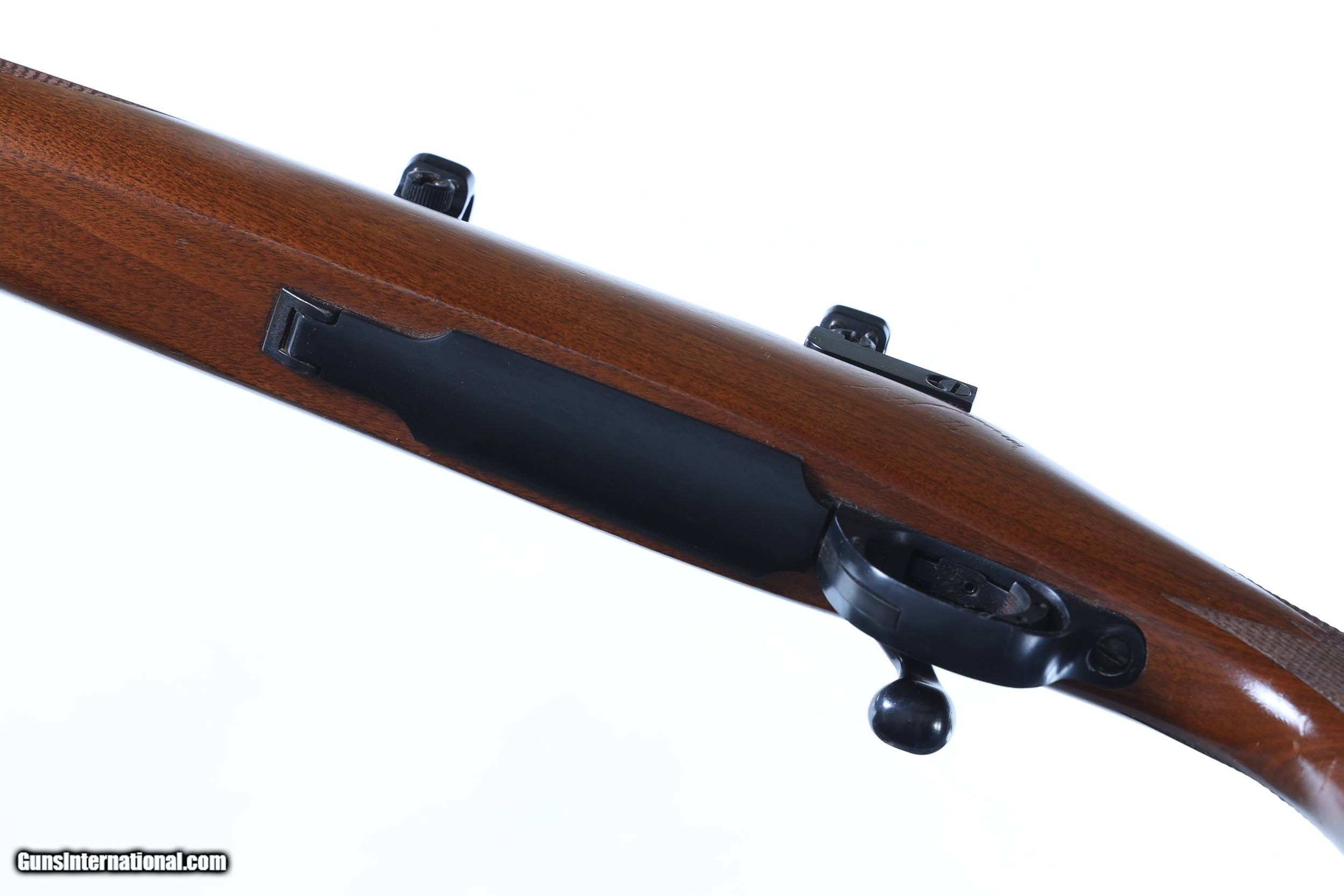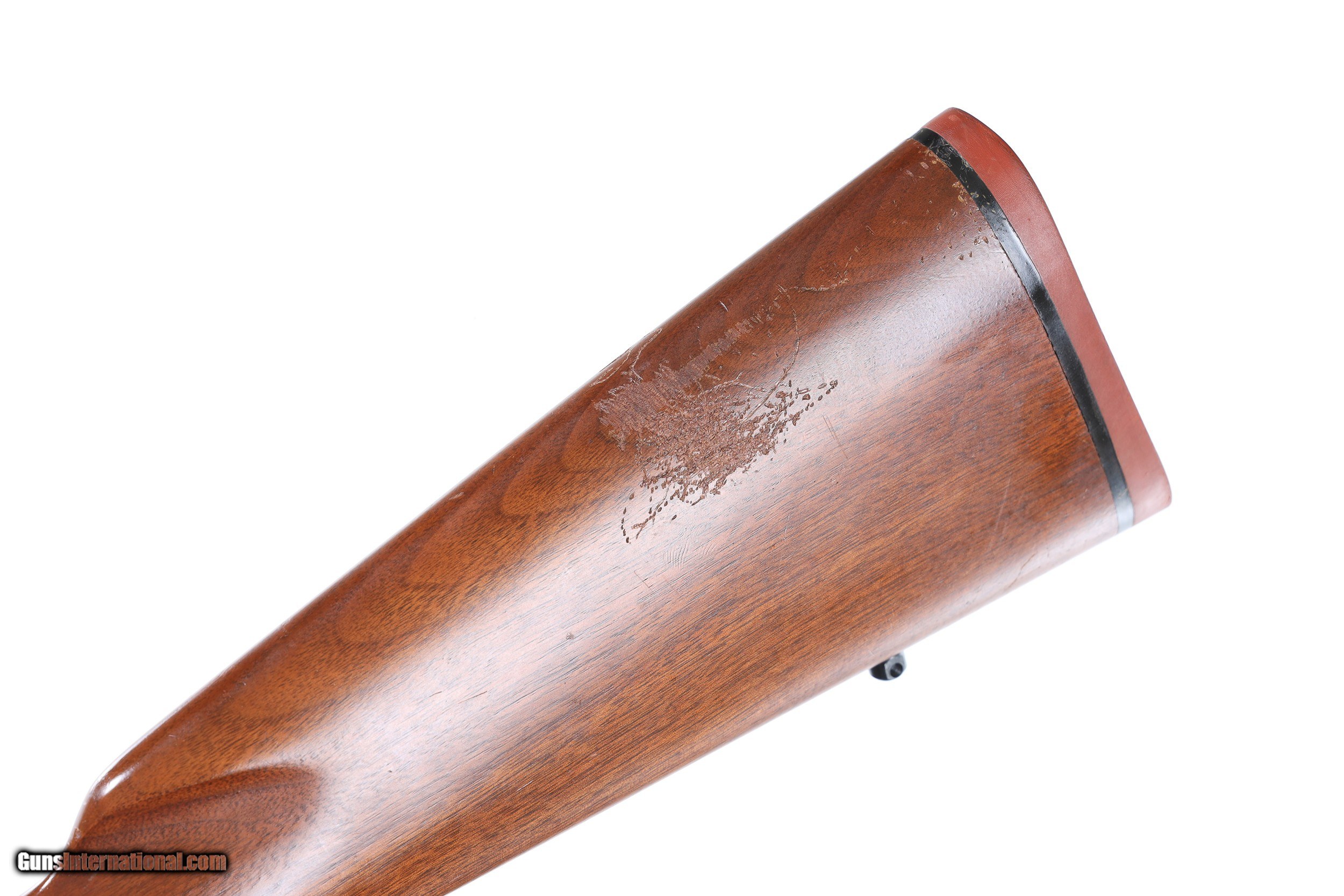 Description: Metal surfaces rate excellent, half dollar size abrasion present on left side of stock. Desirable red pad tang safety with elevated sights. Mfd. 1970 • Free Shipping, No Credit Card Fees. • Lay-a-way available for this firearm. • 1/3 Down, a 1/3 in 30 Days 1/3 in 60 Days. SOLD Manufacturer: Ruger Model: M77 Serial Number: 70-18095 Barrel Length: 22 |