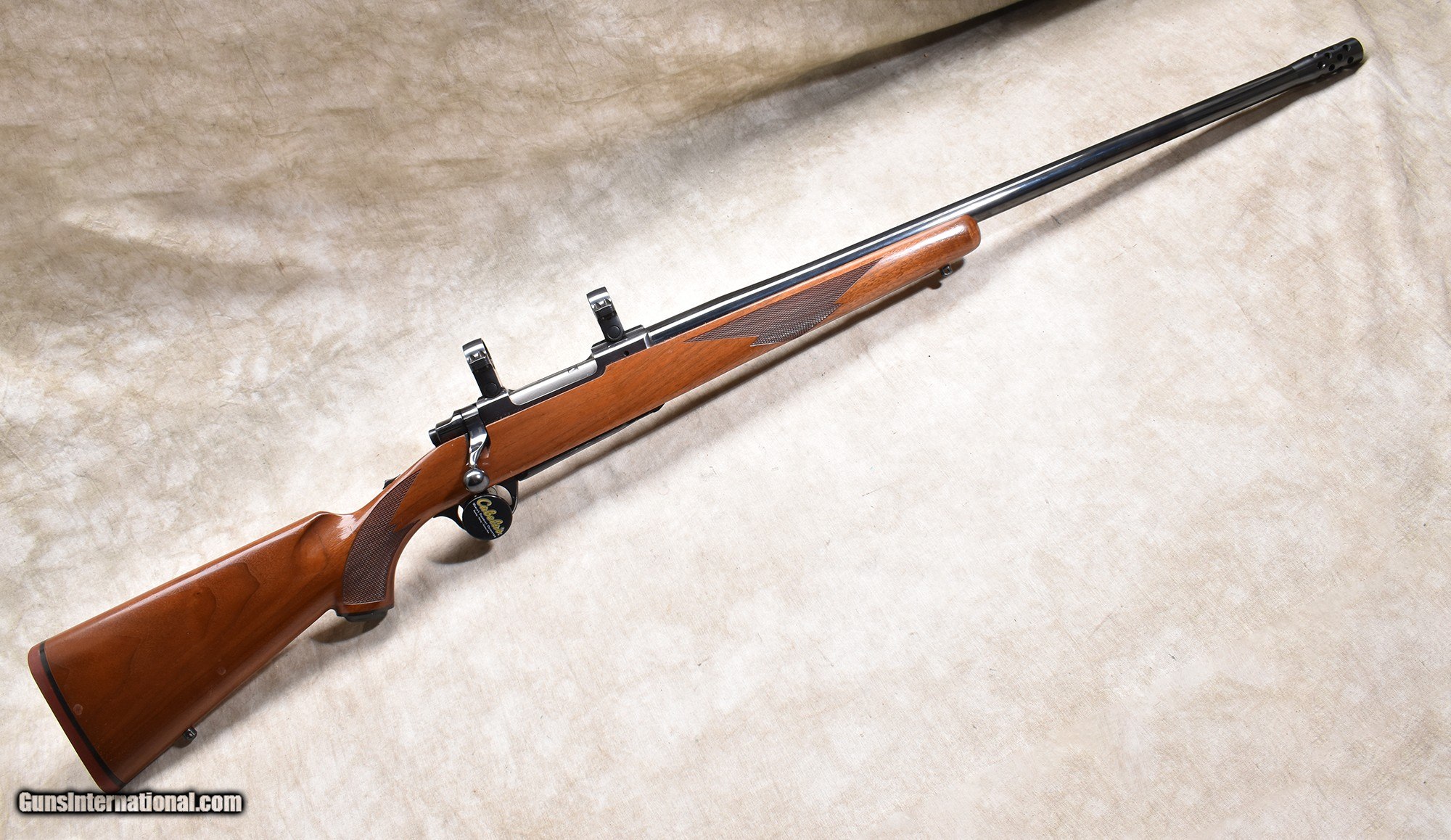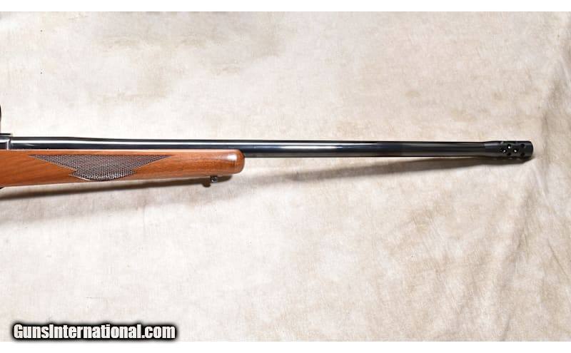Description: This M77 features a heavy barrel, with a muzzle brake, and nice wood. The rifle was manufactured in 1992 and is in great condition. .22-250 Remington Chambers: 5 rounds Metal Condition: Excellent. Wood Condition: "Good to very good. There are a number of scratches and dents from handling, none are very severe. Bore Condition: Shiny and bright with good rifling. Barrels: "Heavy contour, 26 inches, including the muzzle brake Triggers: Factory trigger with target shoe. Stock Dimensions: LOP: 13-3/4 inches Butt Pad: Rubber pad. Weight: 9 lb - 3 oz Sights: Set up for scope of your choice. Item Location: Rogers Price: $1,199.99 Contact Seller |