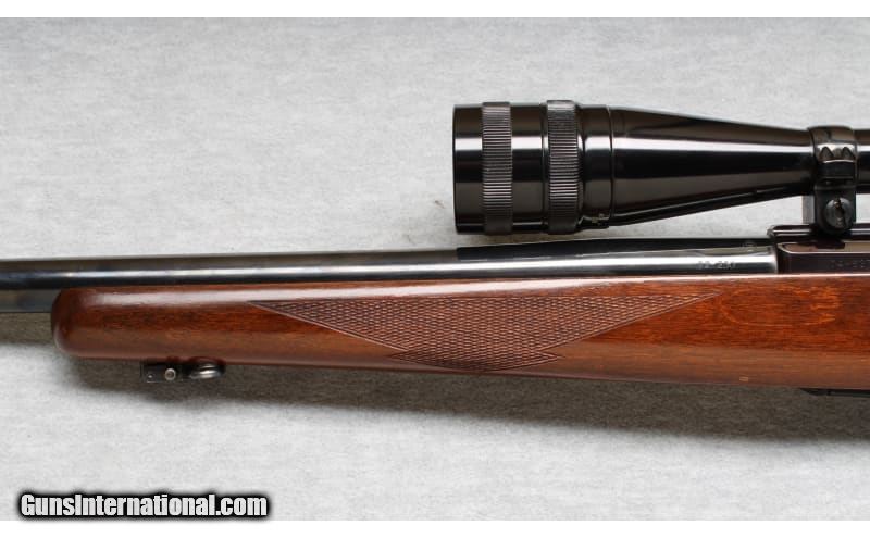 Description: Excellent metal, very good wood with small nicks and scrapes. Ruger M77 bolt action - 24" heavy barrel, polished blued metal, smooth slick action, crisp trigger pull. Redfield 6-18x scope and sling swivels installed. A good choice for varmint hunting or target shooting. .22-250 Remington SOLD Chambers: Bolt action Metal Condition: Excellent Wood Condition: Very good Bore Condition: Bright Barrels: 24 Triggers: Factory Stock Dimensions: 14" LOP Fore End: Checkered Butt Pad: Factory pad Sights: Redfield 6-18x scope Item Location: La Vista, NE |