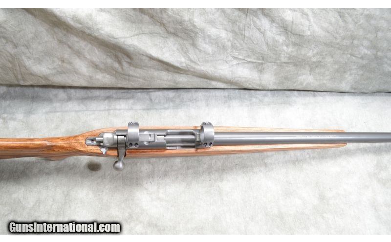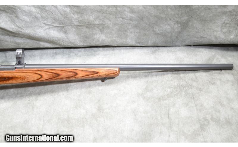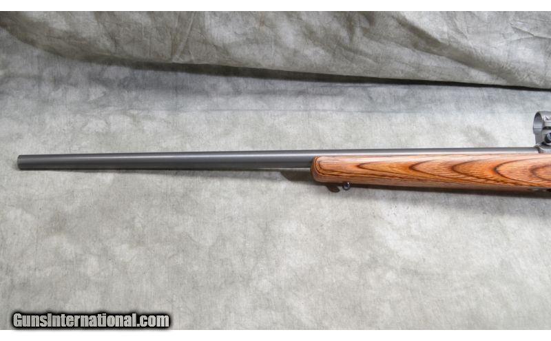 Description: This little varmint rifle features .22 Magnum chambering in matte stainless steel and laminated hardwood. Nice little urban fringe varmint gun with relatively low noise and little recoil. SOLD Manufacturer: 1999 based upon the S/N 702-33xxx. Caliber Info: .22 Magnum. Chambers: Detachable rotary magazine. Metal Condition: Excellent. Very few signs of use. Wood Condition: Excellent, Little evidence of use. Bore Condition: Shiny and bright with good rifling. Barrels: 24 inch matte grey stainless steel barrel. Triggers: Factory trigger. Stock: Laminated hardwood with pistol grip. Stock Dimensions: 13 - 5/8 Inch LOP Butt Pad: Rubber recoil pad. Weight: 7 lb. - 11 oz. as shown with scope rings. Sights: Set up for your choice of scope. Extras: Scope rings and one magazine. Item Location: Rogers,, MN |