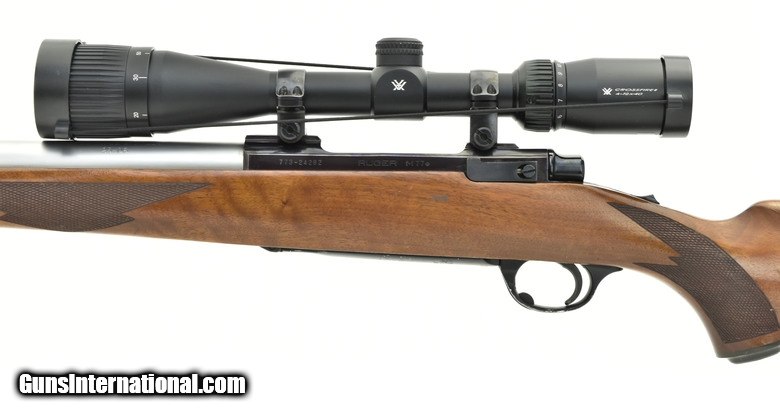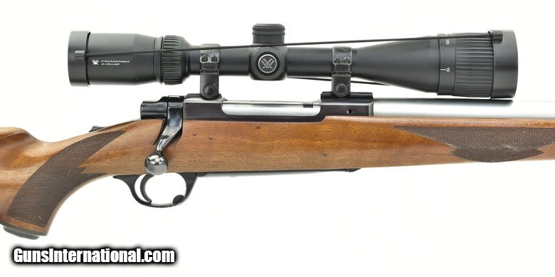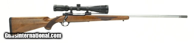 Description: Ruger M77 .25-06 Rem caliber rifle. Early Tang safety model with custom 26” Hart stainless heavy barrel, with muzzle brake. Has a Vortex 4-12X scope.