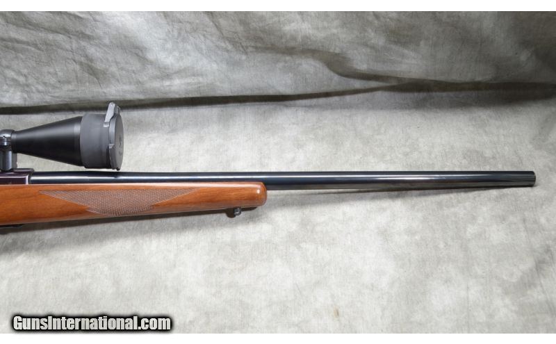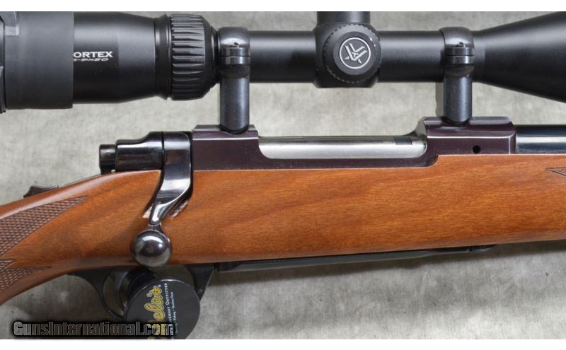 Description: This Ruger M77 features include walnut stock with pistol grip, sharp checkering and medium heavy contour barrel. It has internal magazine with hinged floor plate. It is set up for scope and furnished with a Vortex Crossfire 3-9x50mm scope. SOLD Manufacturer: 1978 based on the S/N 73-18xxx Caliber Info: .25-06 Rem. Chambers: 3 round internal magazine with hinged floor plate. Metal Condition: Excellent. It has been fired but lightly used. Wood Condition: Excellent with minimal signs of use. Bore Condition: Shiny and bright. Barrels: 24 inch blue barrel with medium heavy contour. It measures .75 at the muzzle. Triggers: Factory trigger. Stock: Checkered pistol grip walnut. Stock Dimensions: 13 - 5/8 Inch LOP. Butt Pad: Rubber pad. Weight: 10 lb. - 2 oz. as shown with scope. Sights: Set up for scope and furnished with a Vortex Crossfire 3-9x50mm scope. Extras: Scope. Item Location: Short Pump, VA |