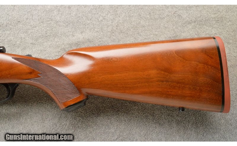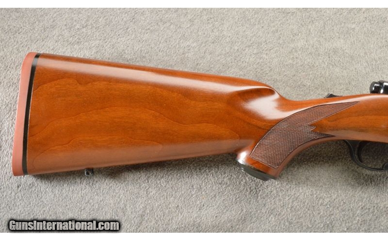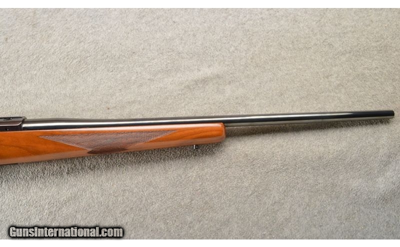Description: This is a very nice and hard to find Ruger M77 in .250 Savage. This hard to find .250 Savage with gloss blue metal and very nice walnut. The blue is very strong and new looking. The walnut stock is new looking as well. This is a very nice hard to find rifle in excellent like new condition. .250 Savage SOLD Chambers: Bolt action repeater. Metal Condition: Like new. Wood Condition: Like new. Bore Condition: Like new. Barrels: 22" blue with a pencil barrel. Triggers: Single blue trigger. Stock Dimensions: 13 5/8" LOP. Fore End: Very nice walnut with checkering and a sling stud. Butt Pad: "Matching walnut with a checkered pistol grip, grip cap, sling stud and a red rubber butt pad. Weight: 7 Lbs. 5 Oz. Item Location: Owatonna, MN |