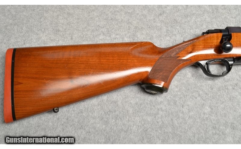 Description: The pre-owned Ruger M77 chambered in .250 Savage, manufactured in 1975 was acquired through a Cabelas's special purchase through an . The bluing retains over 98% of its finish with traces of edge wear and the receiver turning a slight plum color, which is typical of rifles of its age and manufacture period. The stock is very fine with a few minor handling marks, and a very nice pre-warning tang safety. It also sports a magazine with drop floor plate, a Ruger red recoil pad, and an excellent bright bore with crisp rifling. .250 Savage SOLD Chambers: .250 Savage Metal Condition: Very good Wood Condition: Very good Bore Condition: Very fine Barrels: 22 Triggers: Factory Stock Dimensions: LOP 13-3/4 Fore End: Checkered Walnut Butt Pad: Red Ruger rubber butt pad. Weight: 7.5 lbs Item Location: Columbus, OH |