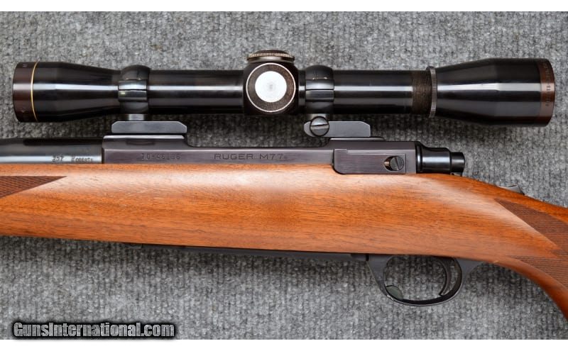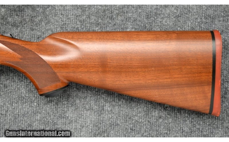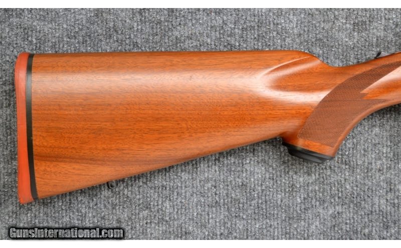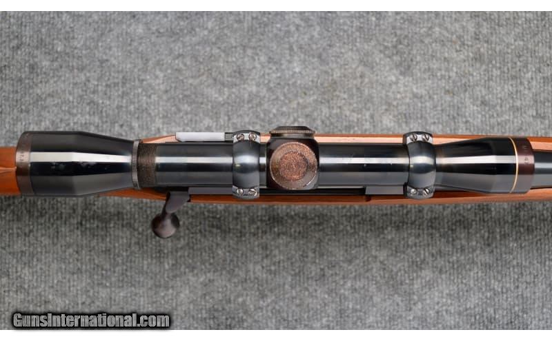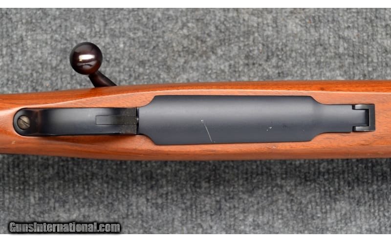 Description: For your consideration, a Ruger M77 chambered in .257 Roberts. This piece is early production with plunger ejector, tang mounted safety and the so-called "round top" receiver lacking cuts for Ruger's factory scope rings. The iron sights are supplemented by a Leupold M8 4x scope in a Redfield bases and rings. .257 Roberts SOLD Metal Condition: Very Good+ Wood Condition: Very Good Bore Condition: Excellent Barrels: 24 Triggers: Smooth Face Stock Dimensions: 13.5" LOP Fore End: Checkered Butt Pad: Rubber Weight: 9 LBS Sights: Leupold Scope and Irons Item Location: Hamburg, PA |