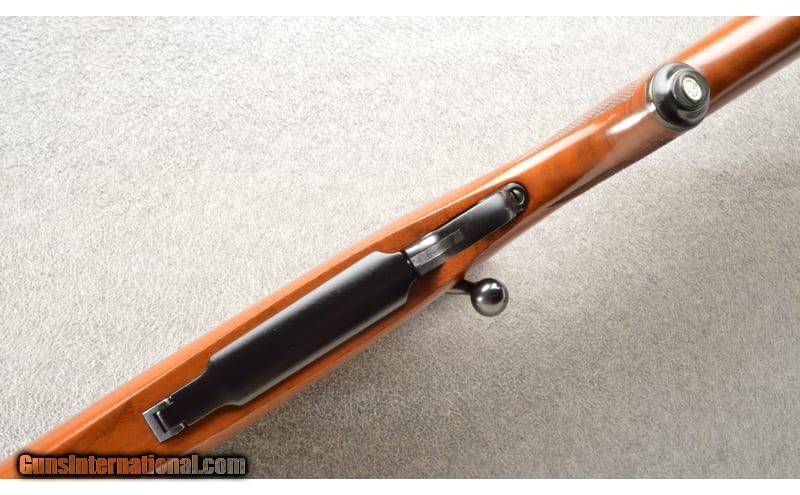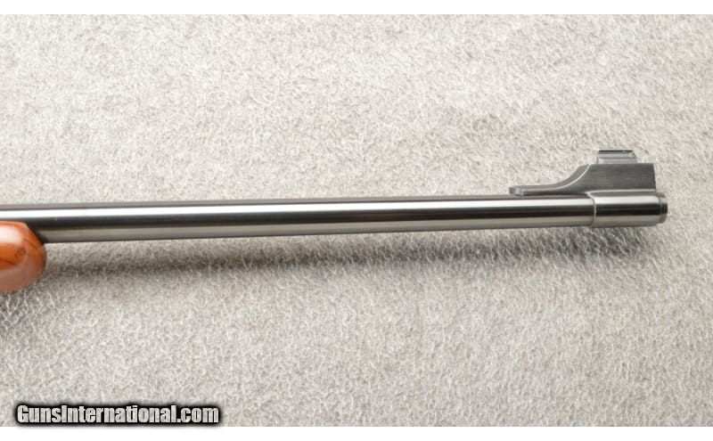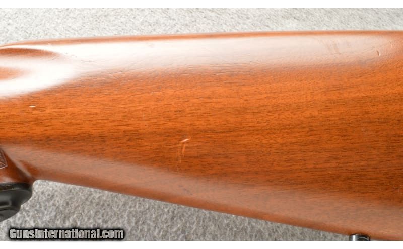 Description: Sturm, Ruger & Co. M77 chambered in .270 Winchester. This Ruger is a pre-warning model with a tang safety. The top of the barrel is marked "STURM, RUGER & CO. INC., SOUTHPORT, CONN. U.S.A.". The left side of the barrel shank is marked "270 WIN" with a proof mark. The left side of the receiver is marked with the serial number "70-67611" and "RUGER M77". The rear of the bolt is marked with the last 5 digits of the serial number "67611" in electric pencil. The front sight is a blade in-line dovetailed to a banded base at the muzzle. The rear sight is a folding "U"-notch with white diamond dovetailed to a base screwed to the rear of the barrel. The rear sight is adjustable for elevation and drift adjustable for windage. The scope is a Leupold 3x9 VARI-X II. The stock is a one-piece walnut with checkered pistol grip, fluted straight comb, and orange rubber Ruger buttpad with the phoenix logo. There are sling studs on the belly of the buttstock and forend. .270 Winchester SOLD Chambers: Bolt action. Metal Condition: 99%. Wood Condition: "95% remaining. There are a few minor surface dings and scratches on the stock and forend, a couple of the marks are more of a mild dent. The checkering is sharp. There are no chips or cracks. Bore Condition: Bright strong bore. Barrels: 22" barrel. Triggers: Single. Stock Dimensions: LOP 13.5". Fore End: Checkered. Butt Pad: Rubber. Weight: 8.5 lbs Sights: Fixed and adjustable. Item Location: Owatonna, MN |