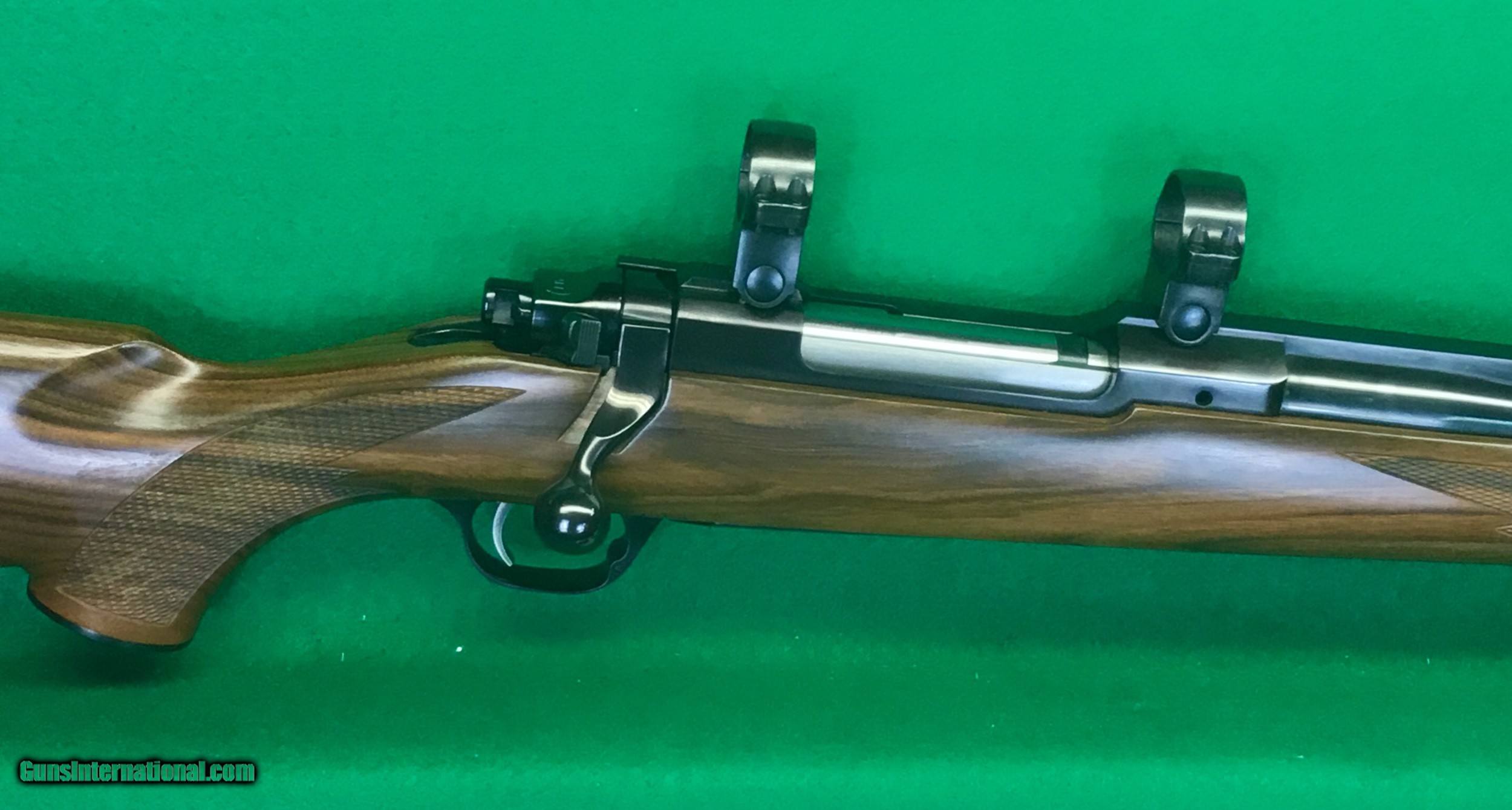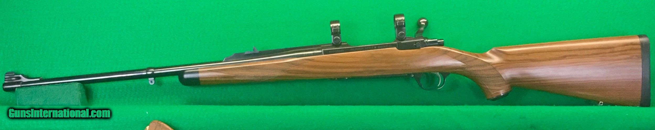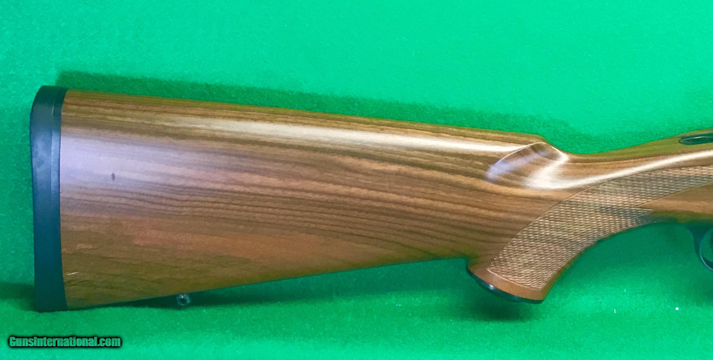 Description: Ruger Model 77 Mark II .270 Winchester with spectacular factory Circassian walnut stock that includes black forend tip. Designated as Model 7601 and M77RSEXP. No warning. Barrel has quarter rib express sights (1 fixed and 1 folder), banded front with bead and sling swivel stud. Looks like a smaller version of a dangerous game rifle. Consider this a fine custom rifle for a lot less than it would cost to have one made. $1298 includes shipping in hard case. Lay a way available. No credit cards and no trades. SOLD |