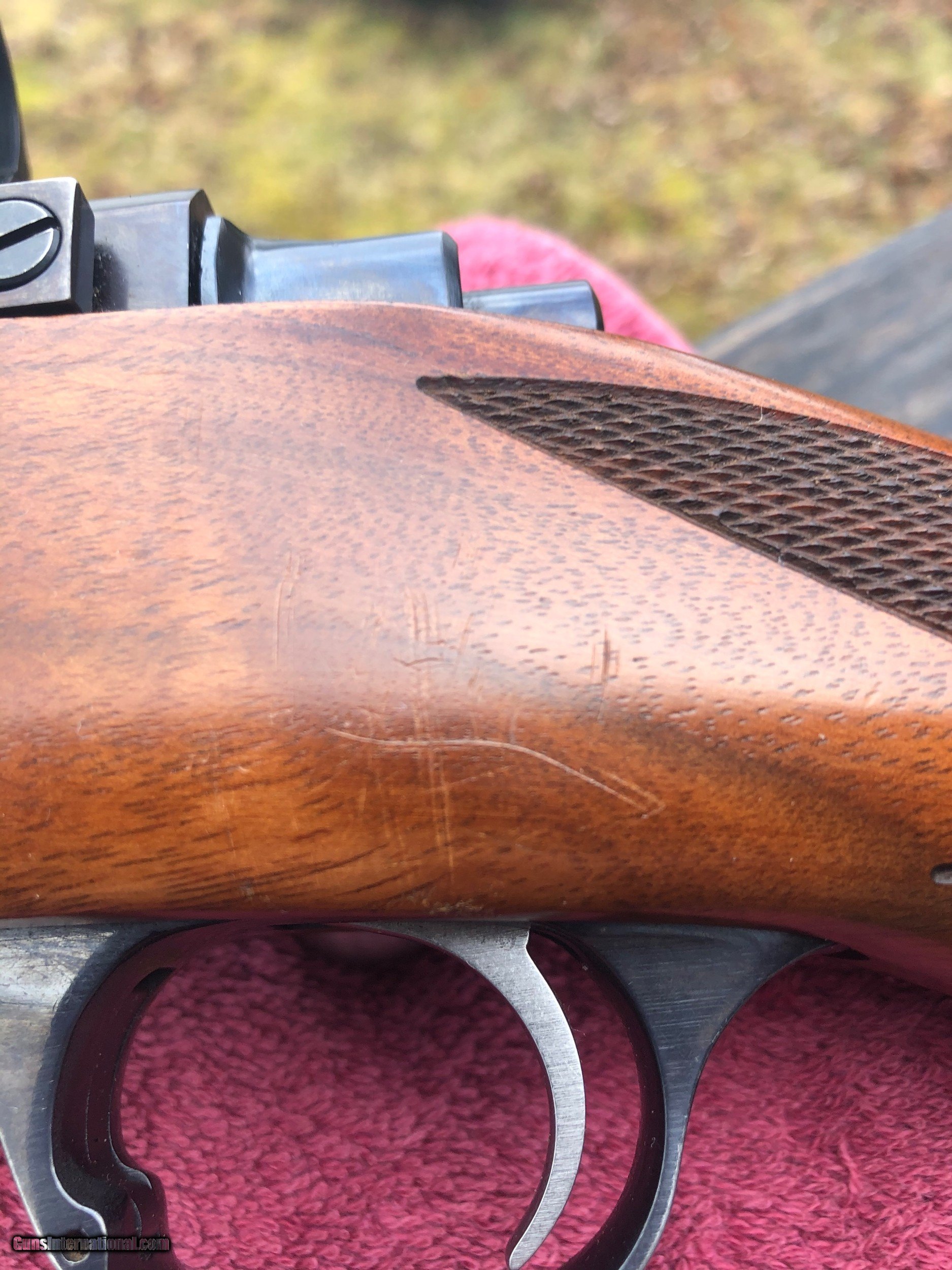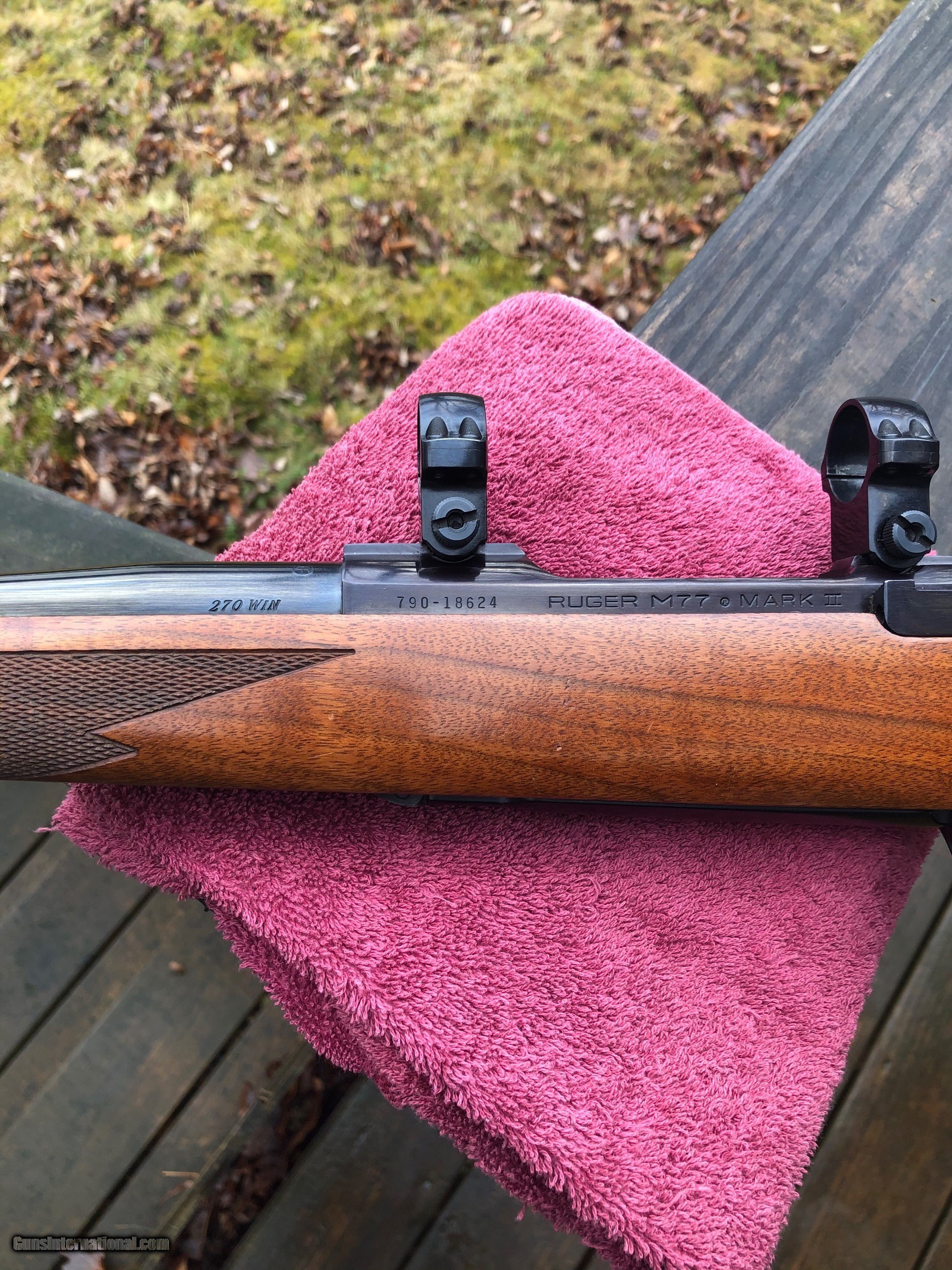Description: Sale Pending 10/30. Here's a very nice Ruger M77 Mark ll in .270. The metal is Exvellent. The bore is Excellent. The wood is Excellent with a couple of handling marks that I've pictured. Please ask questions prior to purchasing. Please make sure that your FFL DEALER will accept this weapon from a NON FFL DEALER. Postal Money Orders will be the method of payment. SOLD |