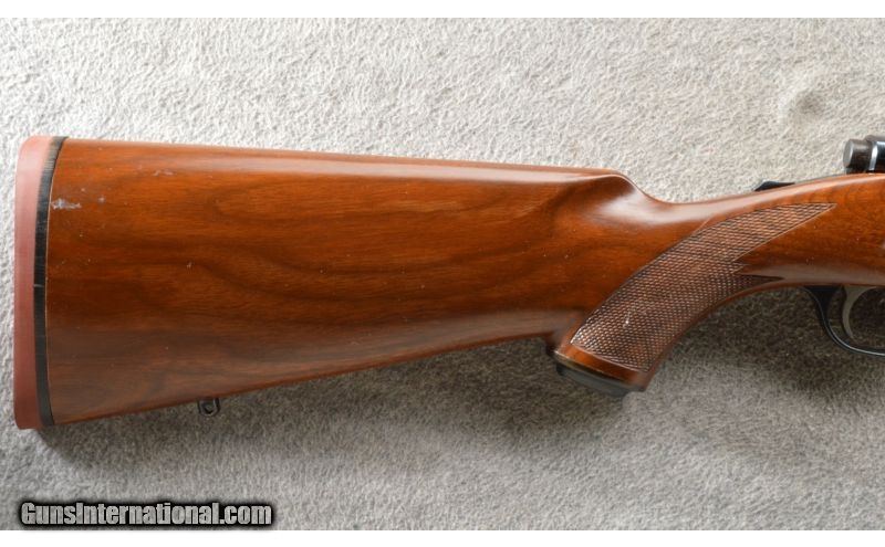 Description: This is a very nice Ruger M77 in .280 Rem. The blue is in excellent condition with the standard dings in the floor plate. The walnut stock is also quite nice. The wood may have had a very light sanding in a few spots and some finish added. This fine rifle has a Mauser action, Ruger rings, Red butt pad and Tang safety. All in all a very nice Ruger rifle. SOLD Caliber Info: .280 Rem. Chambers: Bolt action repeater. Metal Condition: Excellent. Wood Condition: Very nice. Bore Condition: Bright and shiny. Barrels: 22 inch gloss blue. Triggers: Single silver color. Stock: Very nice walnut with a checkered pistol grip, sling stud and a grip cap. Stock Dimensions: 13 5/8 inch LOP. Fore End: Matching checkered walnut with a sling stud. Butt Pad: Ruger red rubber butt pad. Weight: 7 Lbs 7 Oz. Sights: Ruger 1 inch scope rings. Extras: Comes with the factory rings. Item Location: Owatonna, MN |