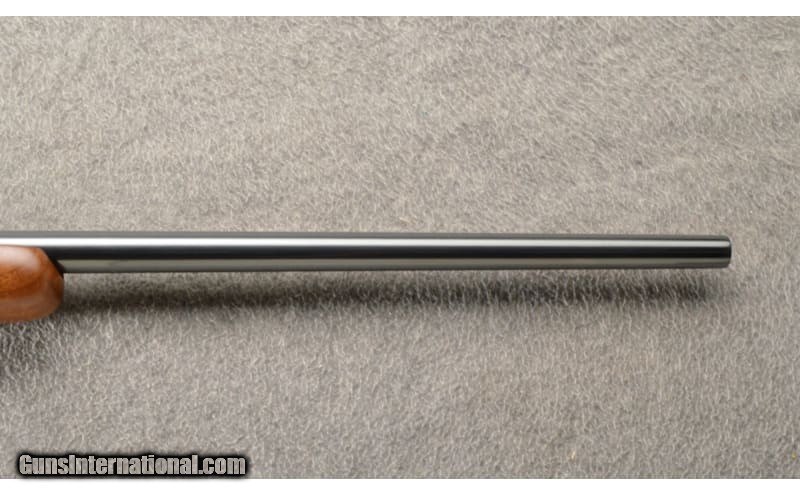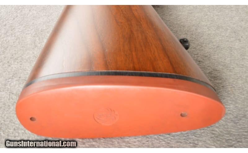 Description: Ruger M77 in 280 Remington / 7 MM EXP Remington with a tang safety. This gun was manufactured in 1981 with serial number 45-85220. This rifle retains about 99% of its metal finish. There is no notable wear or damage, only a few light handling marks. The stock is a one-piece checkered walnut with capped pistol grip, straight comb, orange rubber Ruger buttpad and sling studs front and rear. The grip cap and buttpad are marked with a Ruger phoenix logo. Overall this rifle rates in Excellent condition, but has no box. .280 Remington SOLD Chambers: Bolt action. Metal Condition: 99%. Wood Condition: 99%. Bore Condition: Bright bore with little wear. Barrels: 22" barrel. Triggers: Single trigger. Stock Dimensions: LOP 13.75". Fore End: Checkered. Butt Pad: Rubber. Sights: None. Item Location: Owatonna, MN |