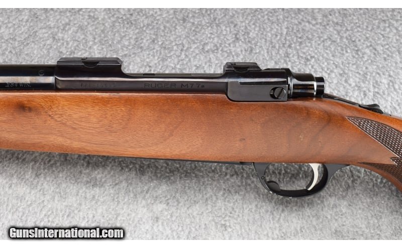 Description: This Ruger M77 in .284 Win was manufactured in 1987 and remains in excellent condition. The blue and bore are excellent. There are some minor handling marks on the wood stock but overall it is a beautiful gun. This M77 has a top tang style safety. No Box!! .284 Winchester SOLD Metal Condition: Excellent Wood Condition: Excellent Bore Condition: Excellent Barrels: 22 Triggers: Factory Stock Dimensions: 14" LOP Fore End: Checkered Walnut Semi Pistol Grip Stock - Checkered Walnut Forend Butt Pad: Red "Ruger" Butt Pad Weight: 7 lbs Sights: None - Equipped with Ruger Style Integral Bases Item Location: Wheeling |