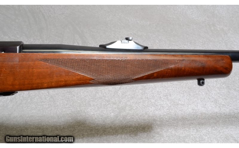 Description: The Ruger M77 is a bolt-action rifle produced by Sturm, Ruger & Co. It was designed by Jim Sullivan during his three years with Ruger. It was designed primarily as a hunting rifle featuring a traditional Mauser K98-style two-lugged bolt with a claw extractor. .30-06 Springfield SOLD Chambers: Bolt Action Metal Condition: Excellent Wood Condition: Very Good with some handling dings Bore Condition: Excellent Barrels: 22" Barrel Triggers: Factory Trigger Stock Dimensions: 13 3/4" lop Fore End: Rounded with Diamond Checkering Butt Pad: Ruger Butt Pad Weight: 8 lbs. Sights: Iron Sights and Redfield Peep Sight Item Location: Tulalip, WA |