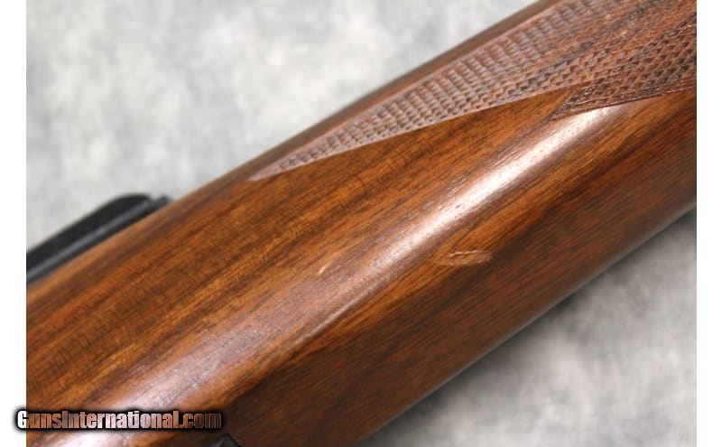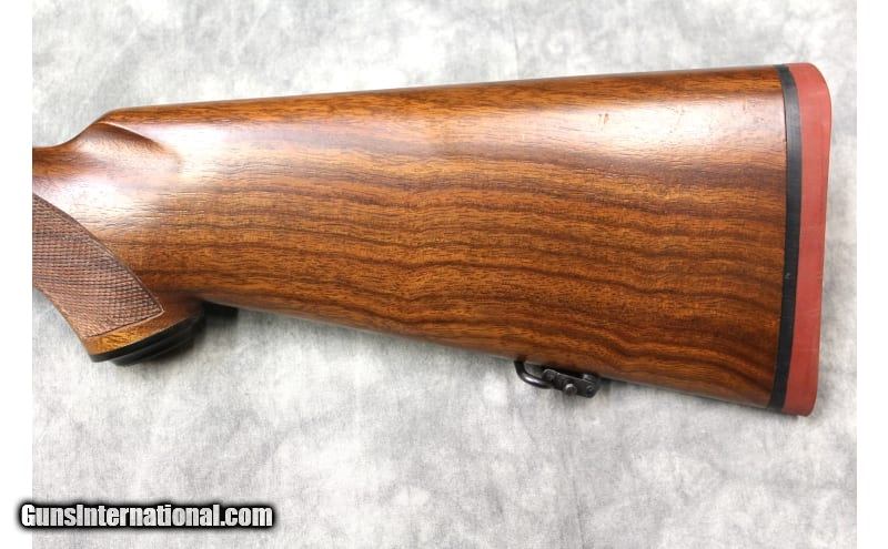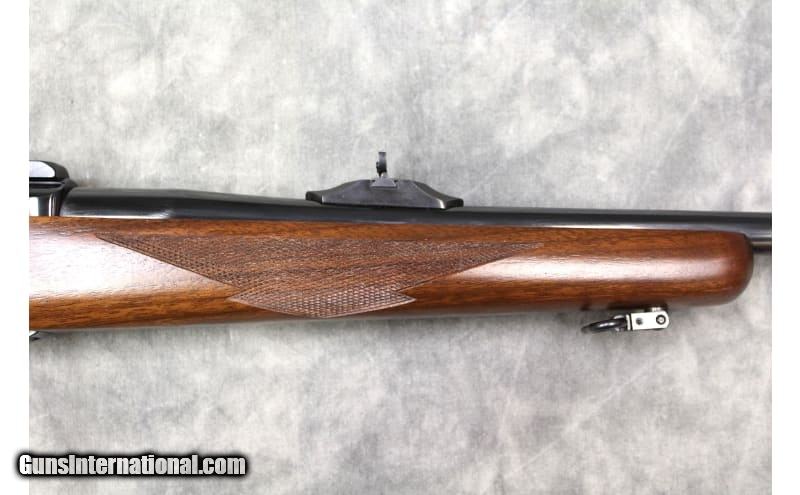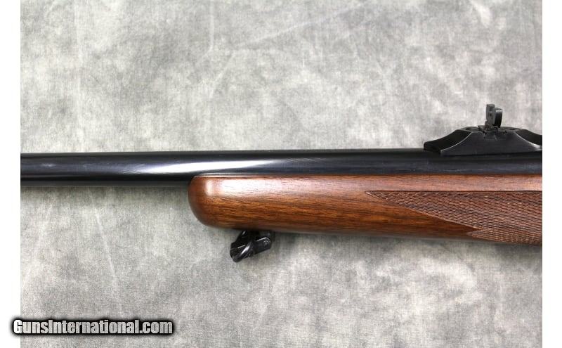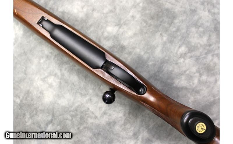 Description: This is a USED Ruger M77 "ST" (otherwise known as a "ROUND TOP") bolt action rifle chambered in .30-06 Springfield. Ruger experimented a little by making some of their flagship Model M77 rifles with round receiver tops rather than the standard type with the integral ring bases. Intended for those shooters that just "had to have" separate bases and rings, the M77 was drilled and tapped for Remington Model 700 bases. Needless to say, it was a commercial flop and Ruger's production of the M77 was both short and very limited. Today these rifles are rarely encountered in the collectible market and typically are used in average to good condition. This exceptional 1982 vintage Ruger Model M77 in .30-06 Springfield is spectacular! This Ruger Model M77 has a factory gloss-blue finish on all of the metal parts, a factory drilled and tapped receiver, a 22" inch barrel with factory iron sights, an internal box magazine with a hinged floorplate, a tang-mounted safety, and a checkered deluxe American Walnut stock with factory-installed sling swivel studs and a red Ruger branded recoil pad. The factory blue finish rates 95%, with little wear, scratches, or blemishes. The bore is mirror-bright with crisp rifling. The checkered panels are crisp and pristine, and the factory installed recoil pad and sling studs are in perfect condition. The stock rates 95% with no cracks, chips, or repairs. All of the controls on this rifle are crisp and like-new, and the action is smooth and precise. This is a really clean and desirable Ruger M77 that is worthy of any serious hunter or Ruger firearm collector. Call the Las Vegas, NV Bass Pro Shops store today! 702-730-5200 .30-06 Springfield SOLD Metal Condition: Overall Excellent with some small scratches/blemishes from light handling and use. Wood Condition: Overall Excellent with some small dings/nicks from light handling and use. Bore Condition: Excellent Barrels: 22 Weight: 6.5 lbs Sights: "Fixed front sight, flip up adjustable rear sight, Leupold STD scope rail mount. Item Location: Las Vegas, NV |