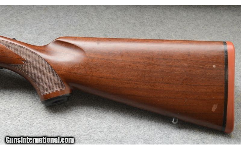 Description: This Ruger features good walnut stock with pistol grip and red recoil pad. Blue shows some freckling and fading and the stock has a number of scratches and dents. SOLD Caliber Info: .30-06 Springfield. Chambers: Internal magazine with hinged floorplate. Metal Condition: Good to very good. Has some fading of the blue and some surface corrosion/freckling. Wood Condition: Good to very good. Numerous scratches and dents. None are severe, especially considering the age of the piece. Bore Condition: Dark but shiny. Barrels: 22 Inch - blue, without sights. Stock: Checkered walnut, pistol grip. Stock Dimensions: 13-5/8 inch LOP. Butt Pad: Ruger red rubber pad. Weight: 7 lbs. - 4 oz. Sights: Set up for your choice of scope. Item Location: Rogers,, MN |