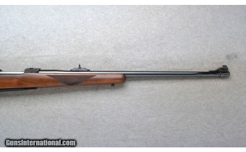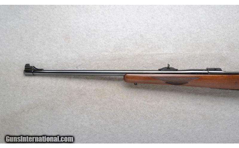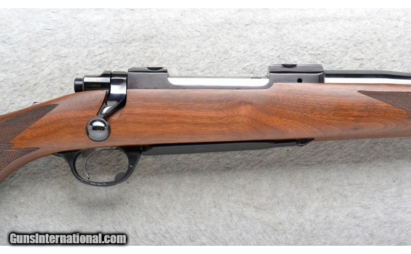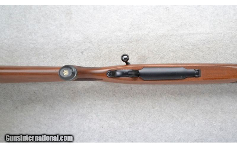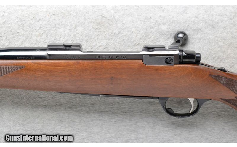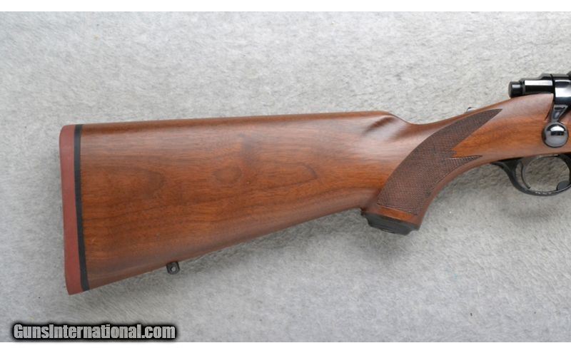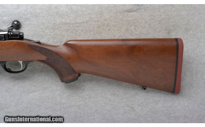 Description: This Ruger Model M77 is a right hand bolt action rifle in .300 Win. Mag. Cal. It has a 24 inch barrel. A raised blade front sight and a folding adjustable notch middle sight. It has an integral scope mount. The butt stock is a checkered grip hardwood pistol grip with a black cap. The forearm is a checkered grip hardwood. .300 Winchester Magnum SOLD Chambers: Internal magazine with a hinged floorplate. Metal Condition: Excellent. A few minor handling marks. Wood Condition: Very Good. Some minor handling marks. Bore Condition: Excellent. Barrels: 24 inch. Stock Dimensions: LOP 13 3/4 inches. Fore End: Checkered grip hardwood. Butt Pad: Ruger red rubber pad. Weight: 7 Lb. 14 Oz. Sights: Raised blade front. Folding adjustable notch middle. Integral scope mount base. Item Location: Richfield, WI |