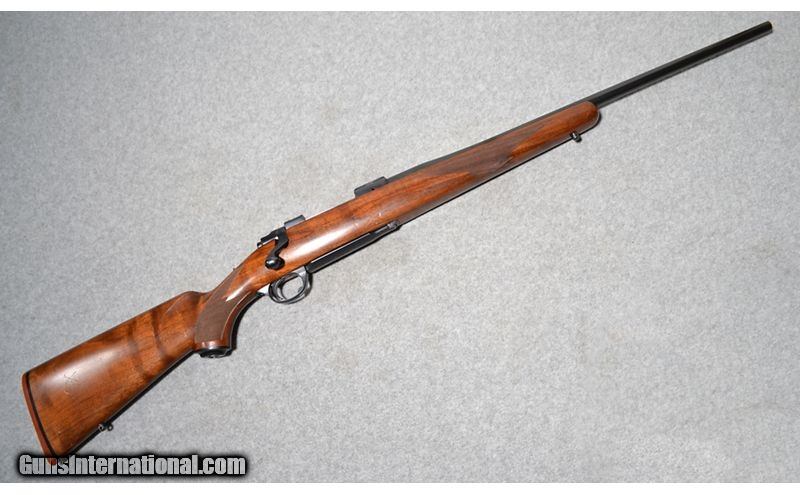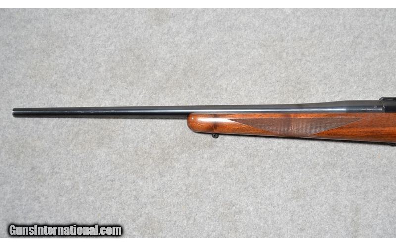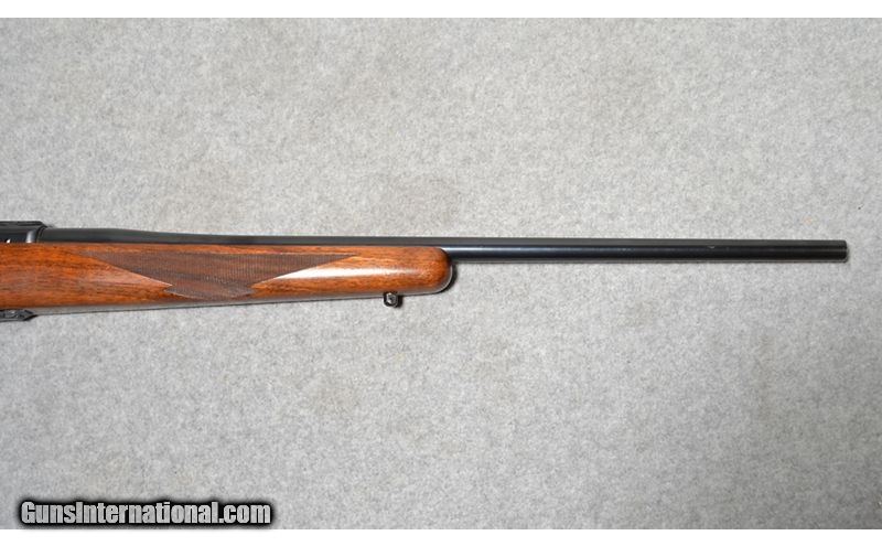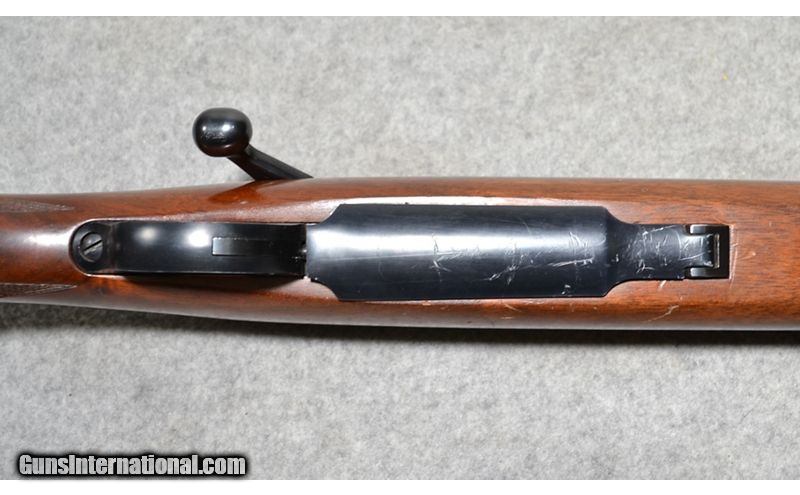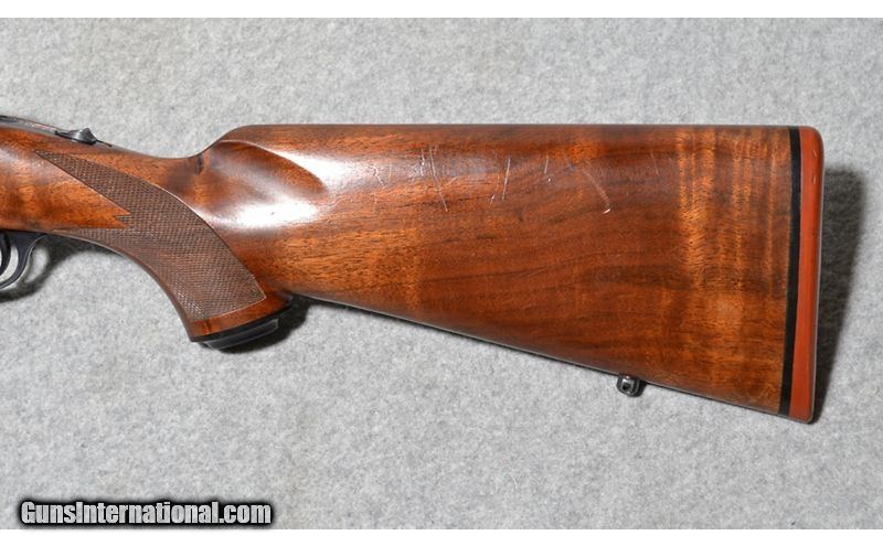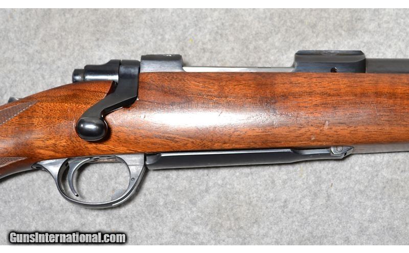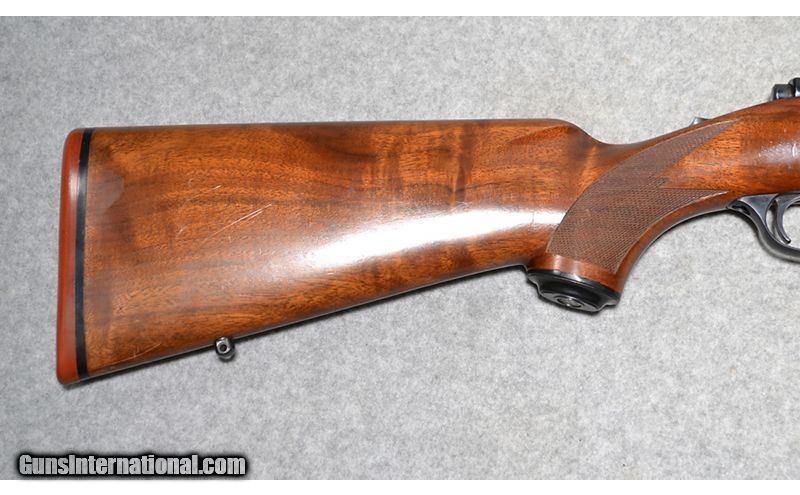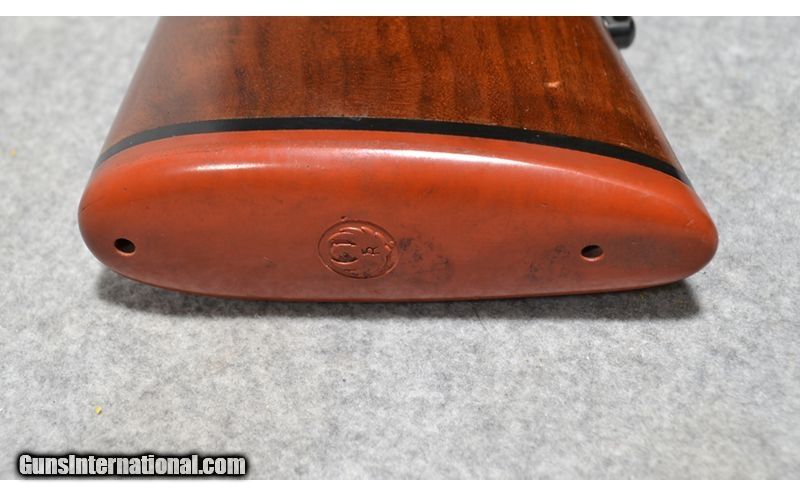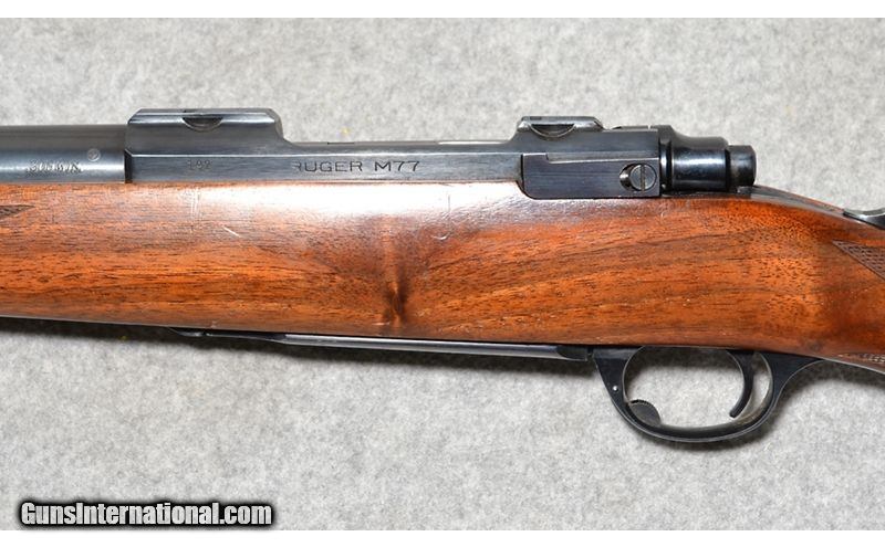Description: Ruger model M77 flat bolt in .308 Winchester. 22" barrel with integral scope base and factory one inch rings. The bore is bright with strong rifling. Action in excellent condition. Flat bolt has some light blue wear. Barrel has blue wear at the muzzle and some scratches. Factory walnut checkered stock has some handing marks, dings, and scratches. A few are through the finish. This is a first year production M77 rifle. .308 Winchester SOLD Metal Condition: Action in excellent condition. Some light blue wear on the flat bolt. Barrel has some blue wear at the muzzle and some light scratches. Floor hinge plate has some scratches with some through the finish. Wood Condition: "Walnut checkered stock has some dings, dents, and scratches with a few through the finish. Bore Condition: Bright bore with strong rifling. Barrels: 22" barrel. Triggers: Smooth trigger. Stock Dimensions: 14" LOP Fore End: Factory walnut checkered pistol grip stock and fore end. Butt Pad: Factory red recoil pad. Weight: 7 lb - 3 oz Sights: Integral scope base with factory one inch rings. Item Location: Mitchell, SD |