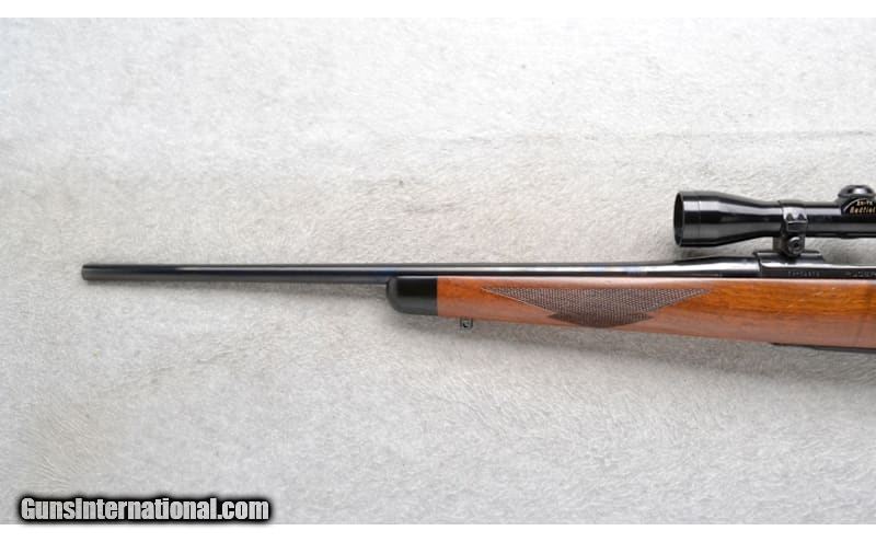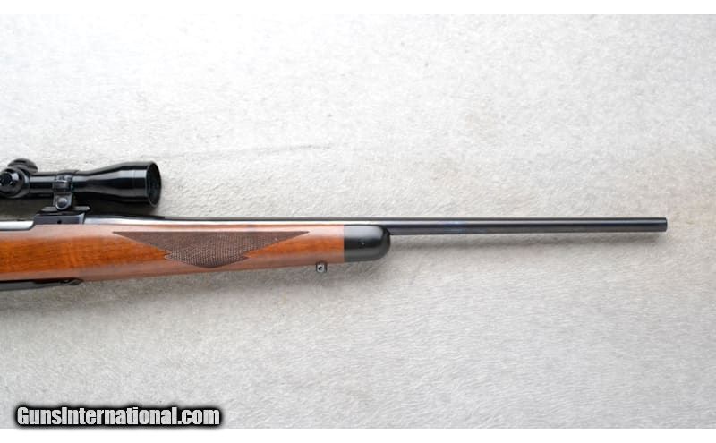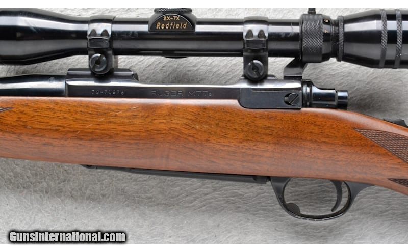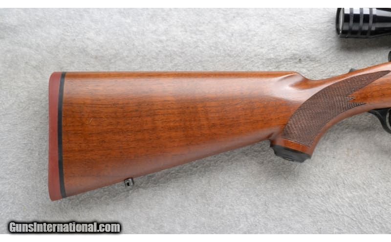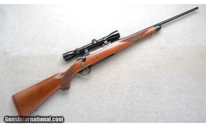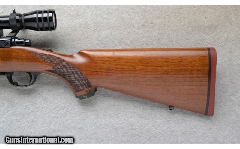 Description: This Ruger Model M77 is a right hand bolt action rifle in .308 Win. Cal. It has a 20 inch barrel. It is outfitted with a Redfield 2x-7x Scope. The butt stock is a checkered grip walnut pistol grip with a black cap. The forearm is a checkered grip walnut with a black tip. .308 Winchester SOLD Chambers: Internal magazine with a hinged floorplate. Metal Condition: Excellent. Wood Condition: Good. Has light handling marks. Bore Condition: Excellent. Barrels: 20 inch barrel. Stock Dimensions: LOP 13 1/2 inches. Fore End: Checkered grip walnut with a black tip. Butt Pad: Ruger red rubber pad. Weight: 7 lb. 4 oz. Sights: Redfield 2x-7x Scope. Item Location: Richfield, WI |