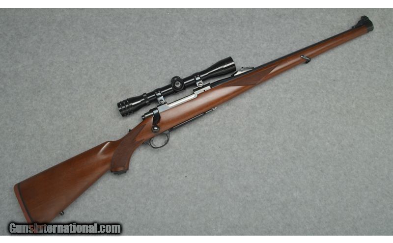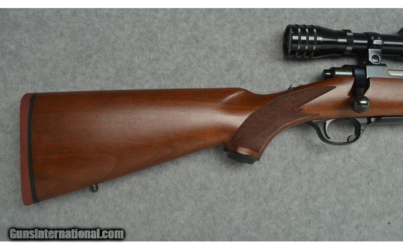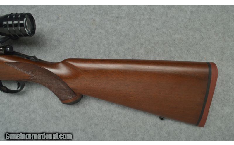 Description: This Ruger M77 is chambered in .308 Win and has a 19" barrel. It comes with a Redfield Tracker 4X on it. It has some use wear on the stock. .308 Winchester SOLD Chambers: .308 Win Metal Condition: Very good Wood Condition: Some use wear Bore Condition: Very good Barrels: 19 Stock Dimensions: LOP 13 1/2 Fore End: Some use wear Butt Pad: Rubber butt pad Weight: 7 lbs 6 oz Sights: Redfield Tracker 4X Item Location: Sun Prairie, WI |