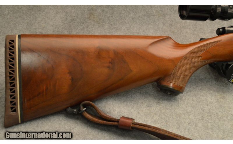 Description: A great Ruger M77 bolt action rifle chambered in .338 Win Mag. Comes with a leather sling and Bushnell 1.75-4.5x scope. Great gun for hunting larger game or at longer distancesFirearms are subject to pending sales. • Replies to emails may take 24-72 hours to respond to (excluding weekends). • Although we strive for accuracy, we are not responsible for pictorial, editorial or typographical errors. The pictures provided are the actual pictures of the gun that is for sale, not a stock photo! PUT THE GUN ON YOUR CABELA'S CLUB VISA AND EARN POINTS TOWARDS YOUR NEXT PURCHASE! DON'T FORGET WE DO HAVE A LAYAWAY PROGRAM! SOLD Manufacturer: 1976 Caliber Info: .338 Win Mag Metal Condition: Great metal, only a small amount of wear / bluing loss Wood Condition: Excellent with some minor field marks Bore Condition: Very shiny Barrels: 24 inch Triggers: Single Stock: Walnut with checkered pistol grip Stock Dimensions: 14 inch LOP Fore End: Matching checkered walnut Butt Pad: Rubber buttpad Weight: 9 lbs 7 ozs Sights: Bushnell 1.75-4.5x scope Item Location: Berlin, MA |