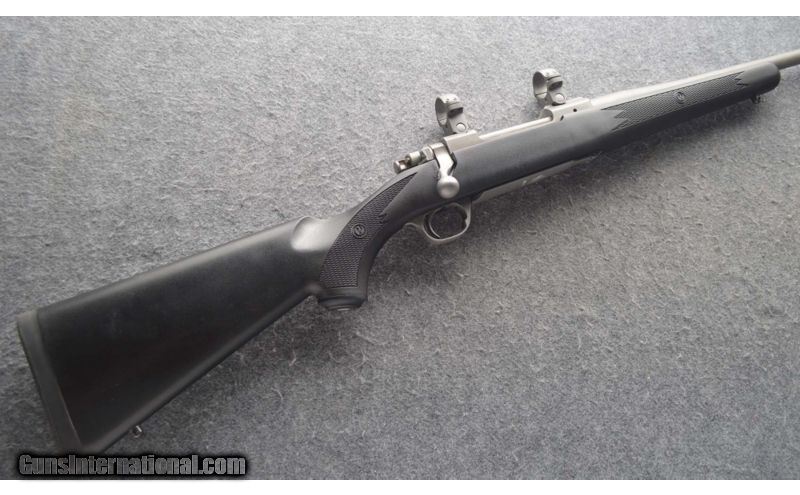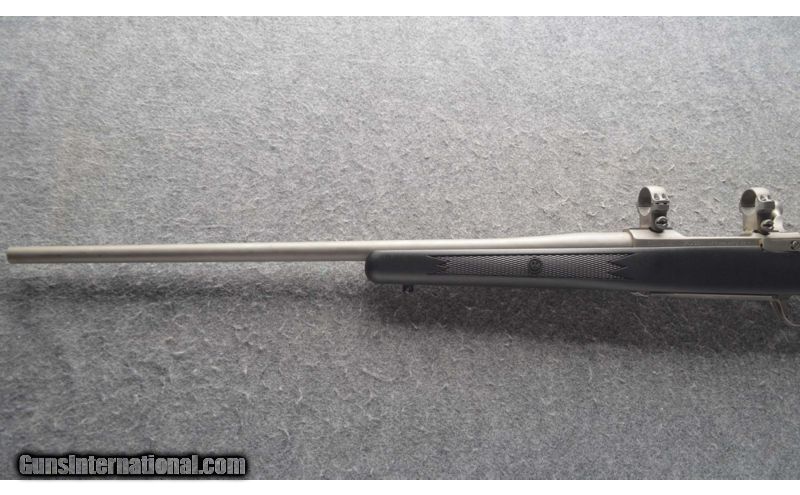 Description: This firearm is a Ruger M77 Hawkeye chambered in .35 Whelen. It is a nice bolt action rifle with some cosmetic issues. SOLD Caliber Info: .35 Whelen Chambers: Bolt action. Metal Condition: Some wear marks and scratches. Bore Condition: Bright and sharp strong rifling. Barrels: 22" matte stainless steel. Stock: Synthetic. Stock Dimensions: LOP 13 1/4". Fore End: Synthetic. Butt Pad: Ruger rubber. Weight: 7 lbs 1 oz. Sights: None, rings. Extras: Rings. Item Location: Sidney, NE |