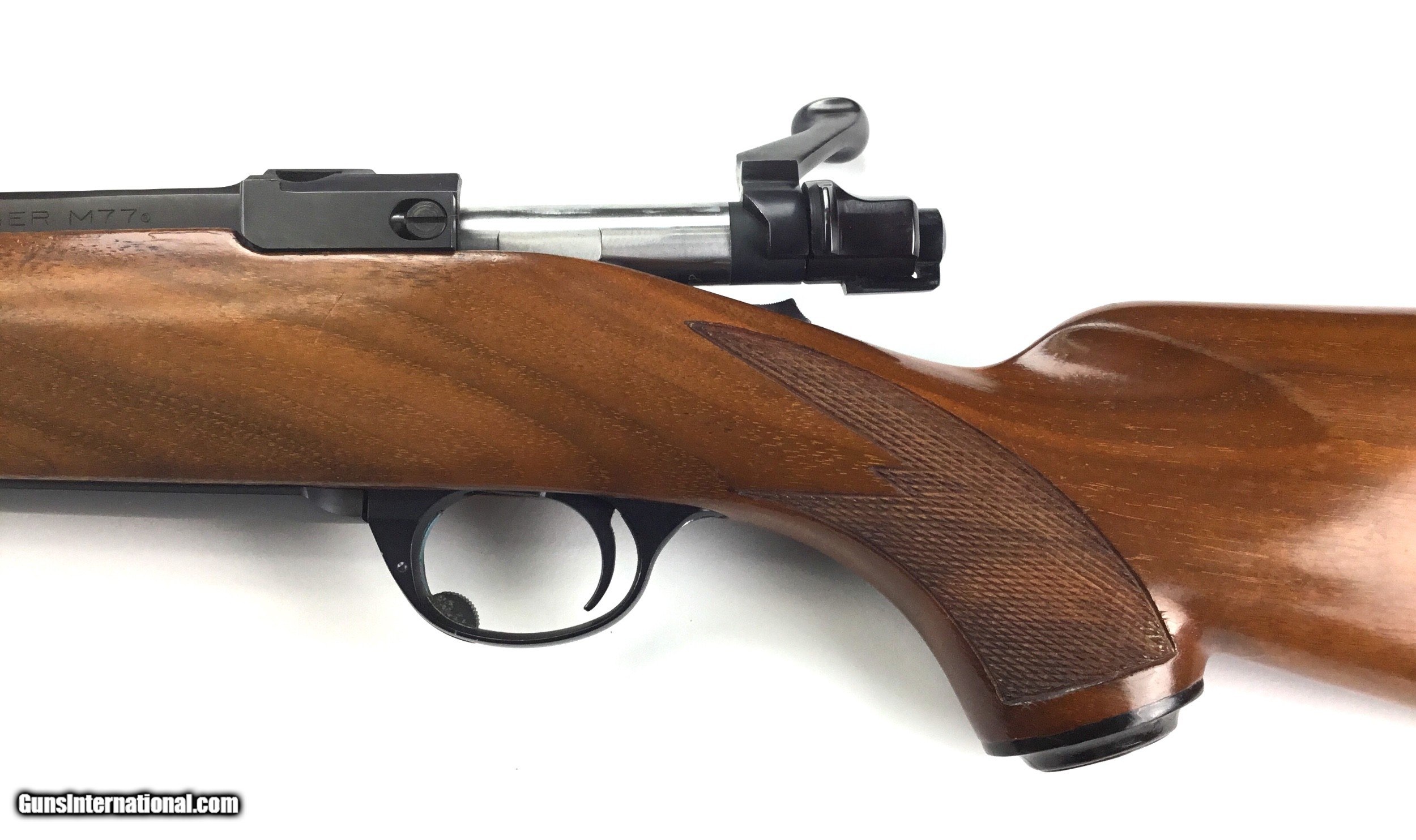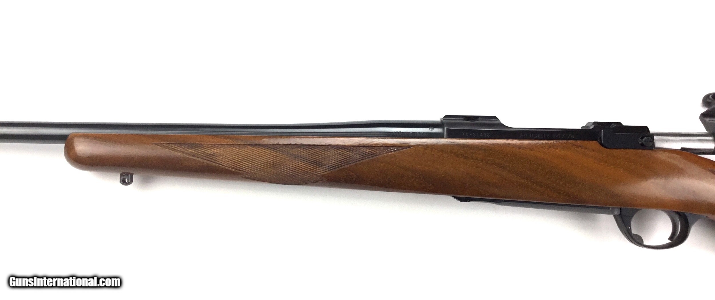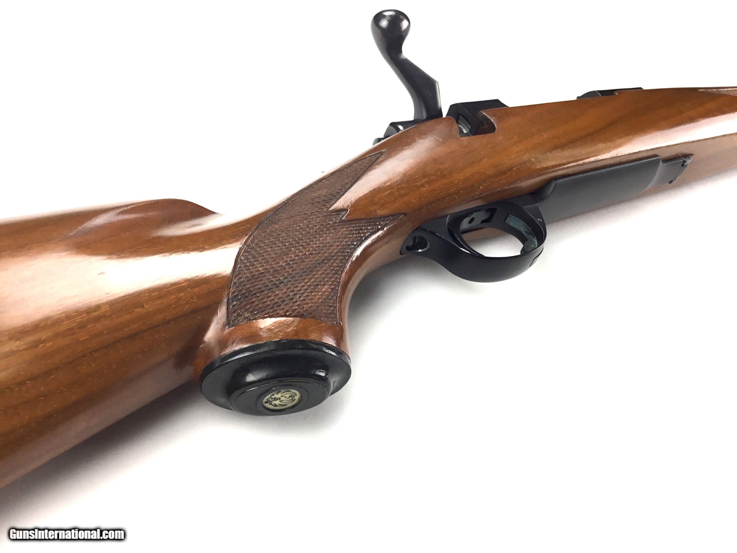 Description: Ruger Model M77 22” Barrel. Bolt action rifle, checkered pistol grip and forend, Red Ruger pad, swivel studs, LOP is 13 1/2”. It shows a few light handling marks. Hampel’s Gun Co since 1919. SOLD Serial Number: 70 - 31438 |