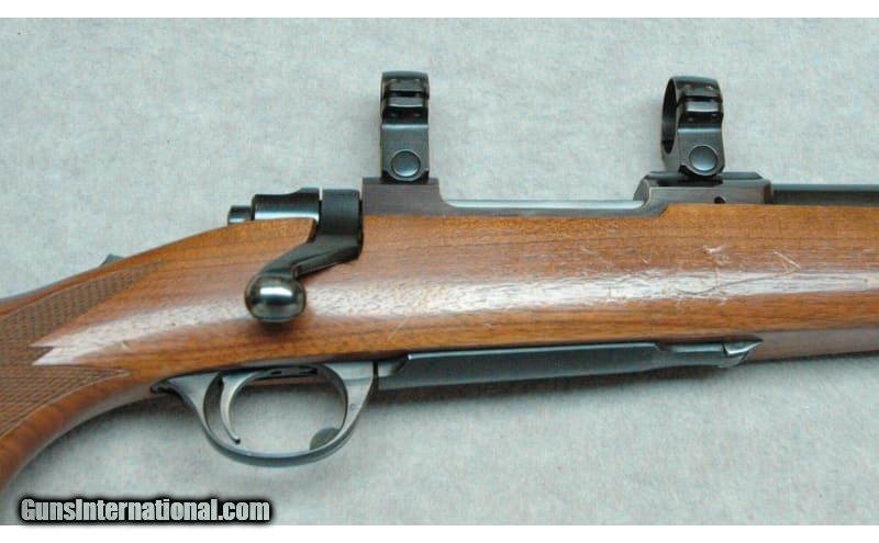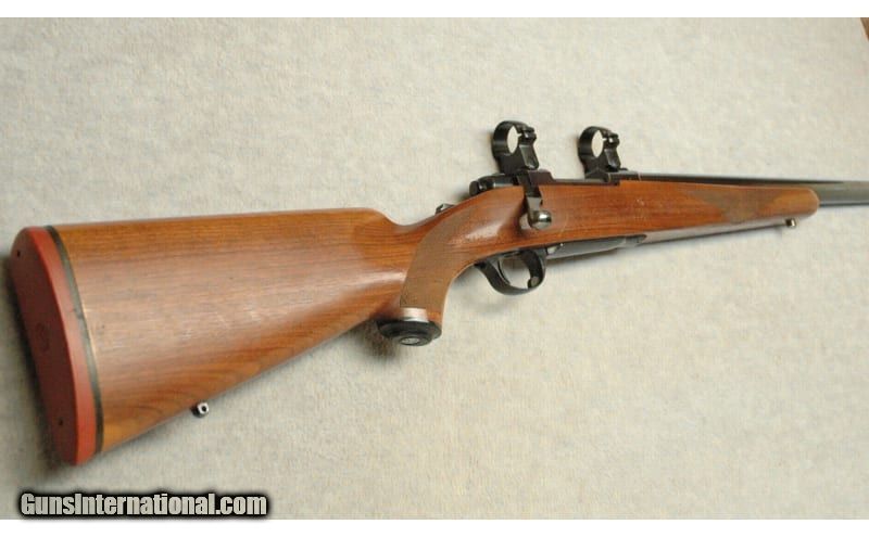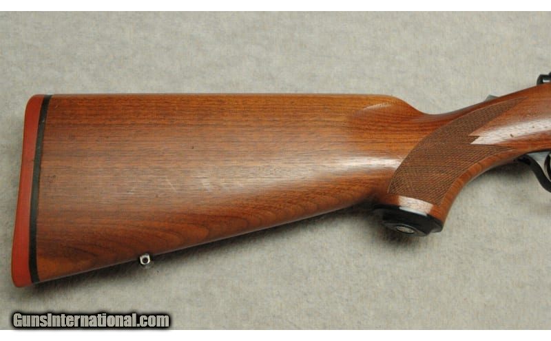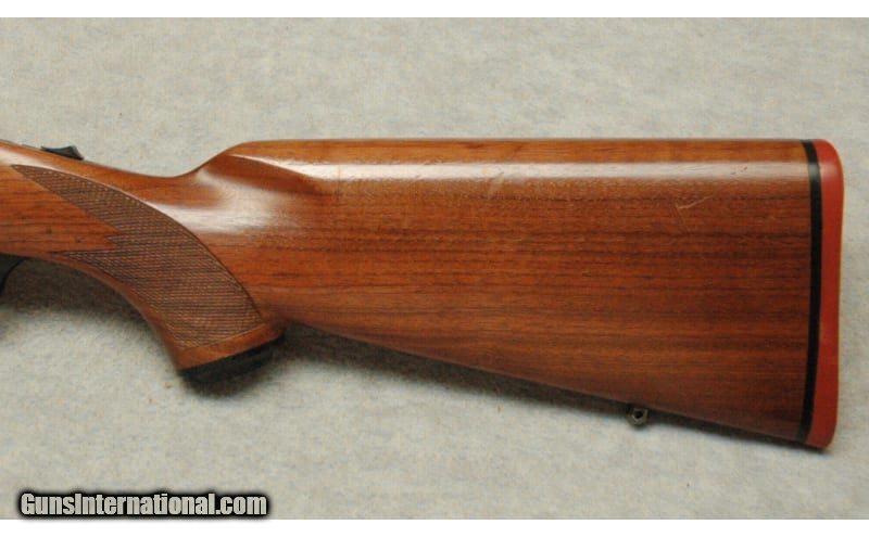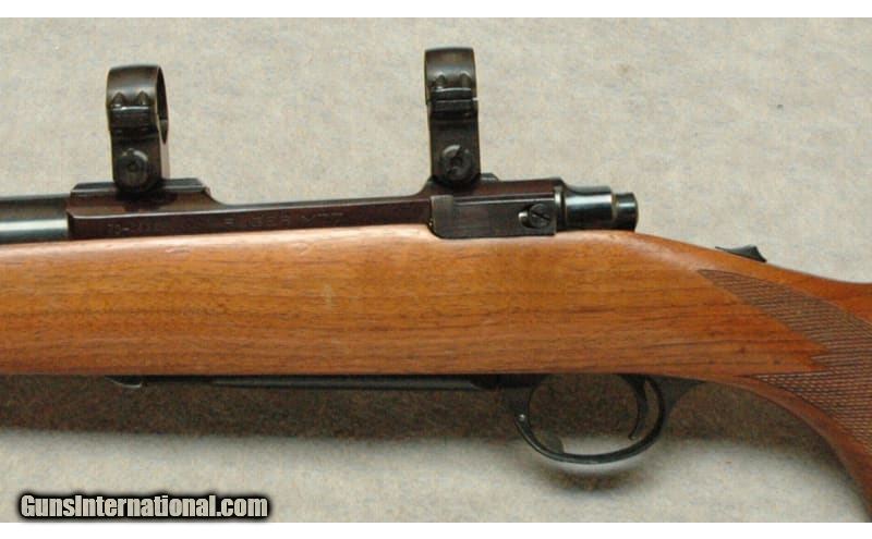 Description: Ruger Model M77 Rifle, .358/.338 CB. Very good condition, some wear, nicks and scratches. 24" Heavy barrel is chambered for the .358/.338 CB cartridge. Smooth action, crisp trigger pull. .358 Winchester SOLD Chambers: Bolt action Metal Condition: Very good Wood Condition: Very good Bore Condition: Bright Barrels: 24 Triggers: Factory trigger Stock Dimensions: 13 3/4" LOP Fore End: Checkered Butt Pad: Factory pad Weight: 10 lb Sights: 1" Scope rings installed Item Location: Rogers |