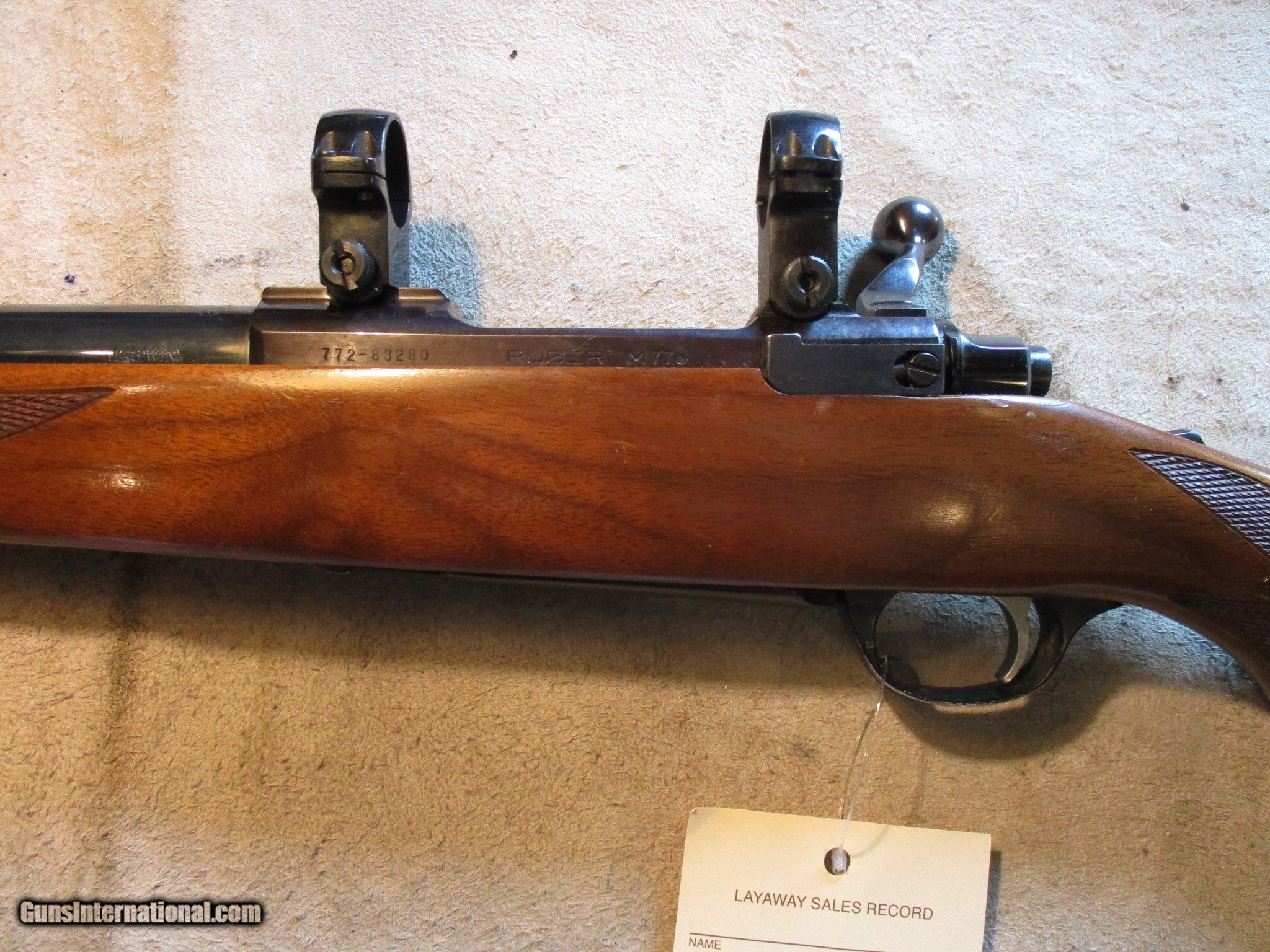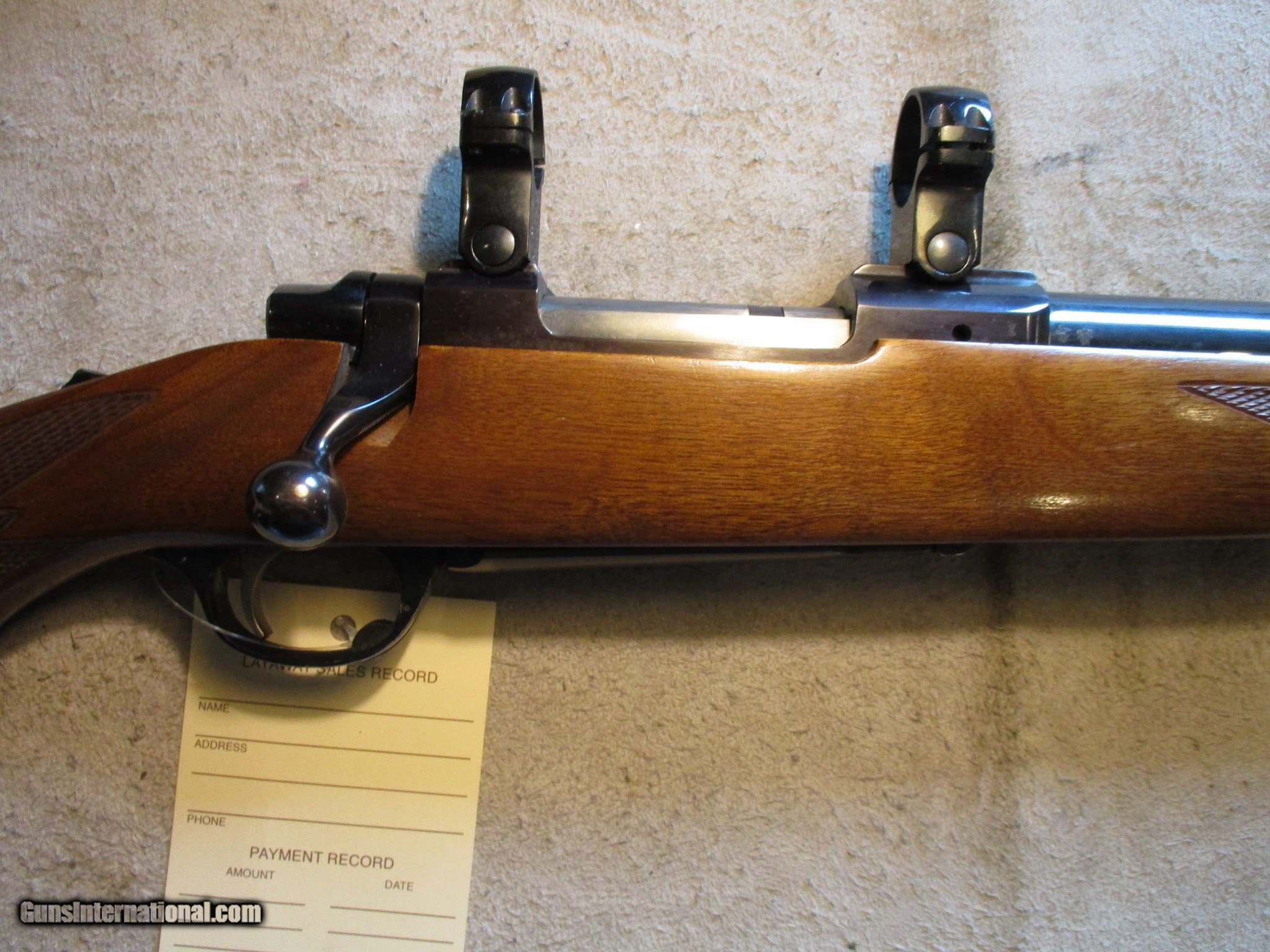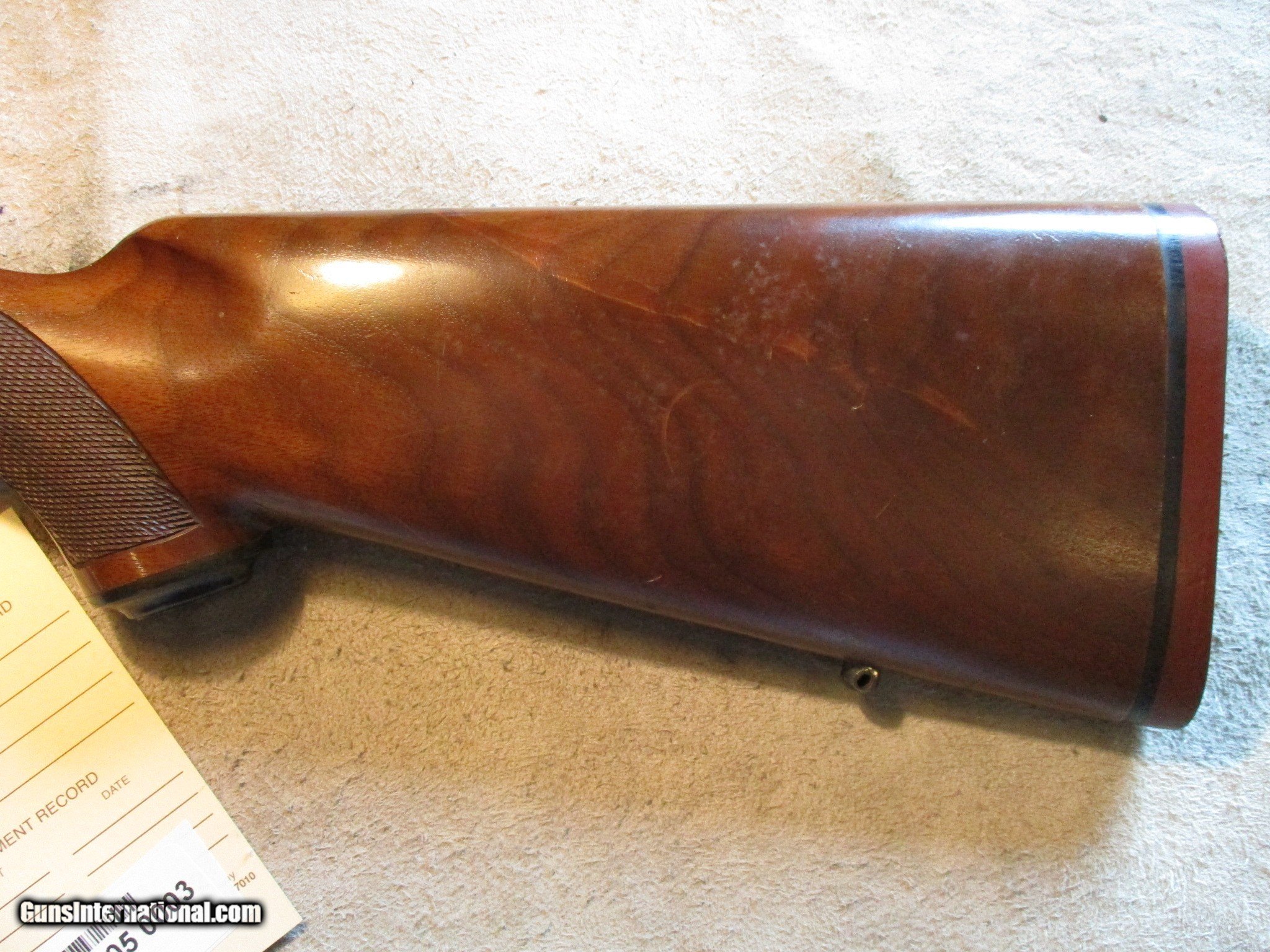 Description: Ruger M77, 243 Win, 24" barrel, perfect bore, with factory rings. SN is 772-832xx, made in 1991. Factory finish on both wood and metal, factory red recoil pad. Nice classic gun, threaded for a break or supressor. We will trade for silver and gold. We accept personal check, any certified funds, -Venmo or -Zelle. We can also take your credit card, +3%. Email me if you would like these pictures sent to you, they will come through bigger and better than on the listing page here. We do offer Layaway. Our standard terms are 25% down, 90 days. Initial deposit is not refundable. Email me with any questions. Please check your local laws to confirm it is legal to own in your state! Buyer pays $60 shipping and insurance in a brand new PLANO hard case to your FFL in the lower 48. AK, HI or PR is extra. I will ship to California, as long as it is legal, NO PROBLEM! All my guns come with a non-firing, 3 day unconditional return privilege, from the day UPS delivers to your dealer. Buyer pays shipping both ways if the gun comes back. Please make sure to make it to your FFL to inspect within the 3 days. I am a licensed FFL, and will include a copy of my FFL with the gun for your dealer’s records. I will ship to a C&R if the gun is eligible. I will ship to California, but you need to confirm the gun is legal where you are, California or other. WE BUY AND CONSIGN GUNS AND GUN COLLECTIONS! We will travel to pick up collections! I am always looking for good clean, old original Winchesters to buy, consign, or trade, especially Pre '64's model 70's and model 54's. WE ALSO TRADE FOR CLASSIC CARS AND TRUCKS! We also trade for gold and silver. SOLD Manufacturer: Ruger Model: M77 Barrel Length: 24 Condition: Used |