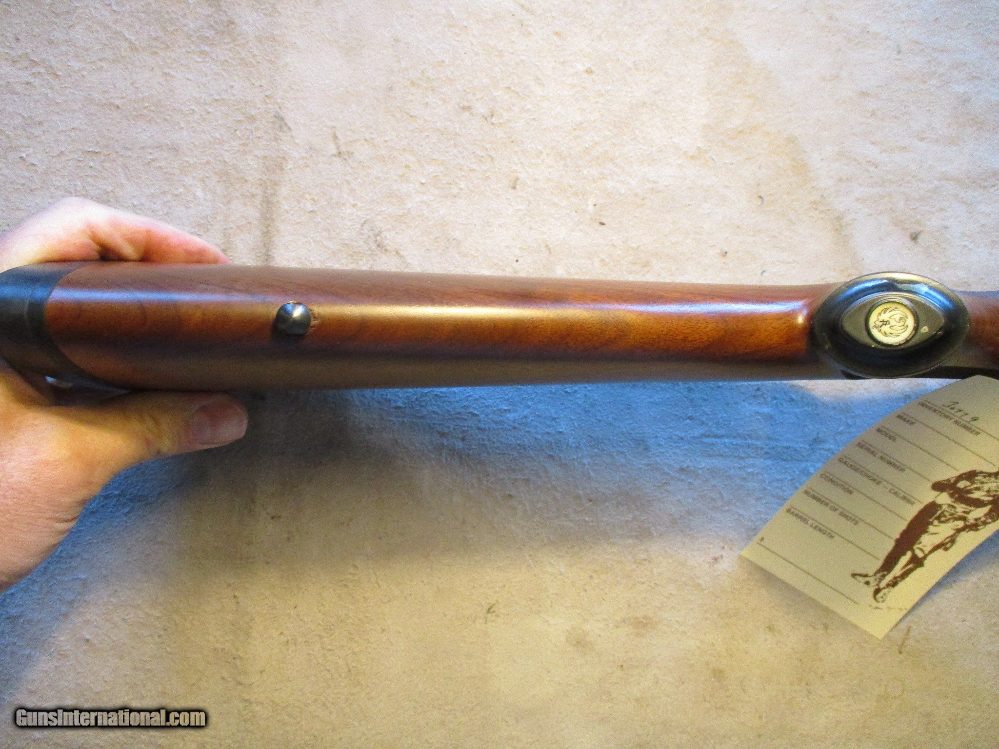 Description: Ruger M77 Mark 2 Left Hand, LH, 30-06, 22" barrel. Factory finish on both wood and metal, factory rings. SN is 782-558xx, made in 1994. Nice clean gun! We will trade for silver and gold. has now started collecting tax for states that mandate it, if applicable they will add it to your total. Email me if you would like these pictures sent to you, they will come through bigger and better than on the listing page here. We do offer Layaway. Our standard terms are 25% down, 90 days. Initial deposit is not refundable. Email me with any questions. Please check your local laws to confirm it is legal to own in your state! Buyer pays $25 shipping and insurance to your FFL in the lower 48. AK, HI or PR is extra. I will ship to California, NO PROBLEM! All my guns come with a non-firing, 3 day unconditional return privilege, from the day UPS delivers to your dealer. Buyer pays shipping both ways if the gun comes back. I can add a new hard case by PLANO for secure shipping for $25 if the buyer wishes (highly recommended, cheap insurance, really helps keep the UPS monster from eating my guns!). Guns sold in Kansas are subject to Kansas sales tax. I am a licensed FFL, and will include a copy of my FFL with the gun for your dealer’s records. I will ship to a C&R if the gun is eligible. I will ship to California, but you need to confirm the gun is legal where you are, California or other. WE BUY AND CONSIGN GUNS AND GUN COLLECTIONS! We will travel to pick up collections! I am always looking for good clean, old original Winchesters to buy, consign, or trade, especially Pre '64's model 70's and model 54's. WE ALSO TRADE FOR CLASSIC CARS AND TRUCKS! We also trade for gold and silver. SOLD Rifle Caliber: .30-06 Springfield Manufacturer: Ruger Model: M77 Barrel Length: 22 Condition: Used |