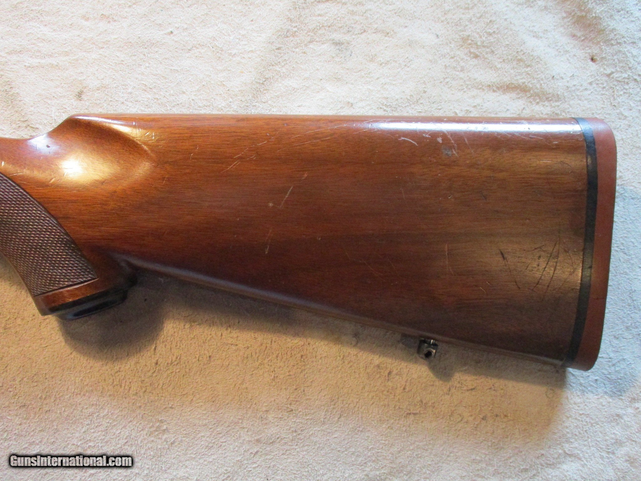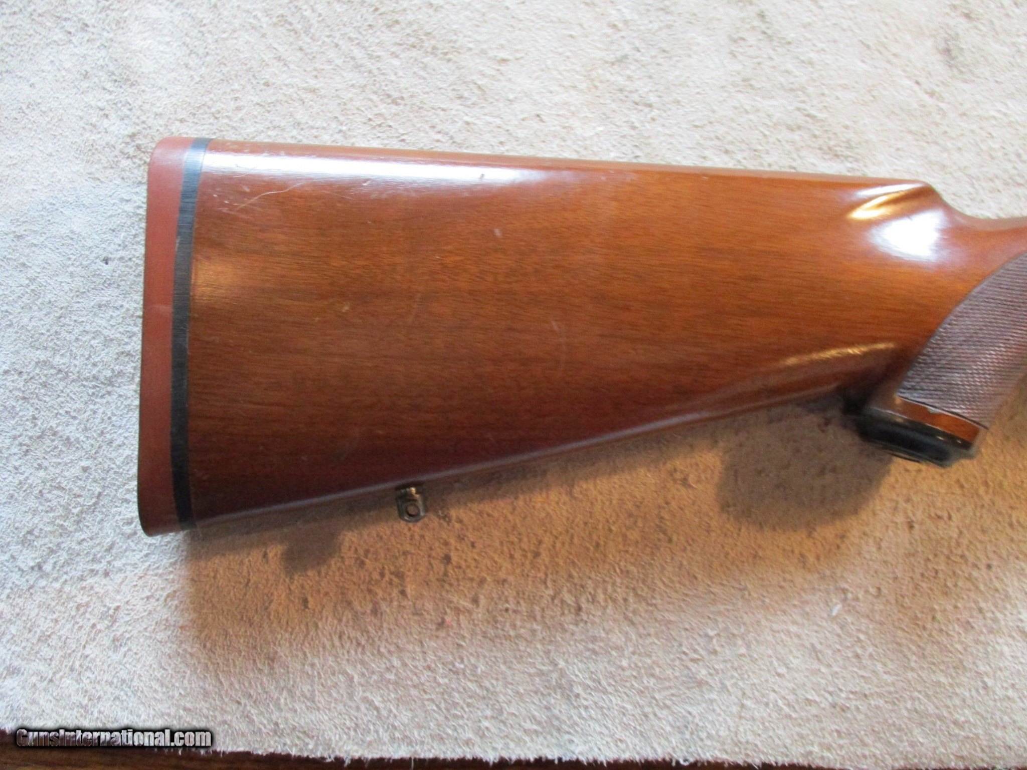 Description: Ruger M77 Tang Safety, 30-06 with a 22" barrel. SN is 75-414783, made in 1981. nice clean gun, factory finish on both wood and metal, comes with factory red recoil pad. Factory rings. We will trade for silver and gold. has now started collecting tax for states that mandate it, if applicable they will add it to your total. Email me if you would like these pictures sent to you, they will come through bigger and better than on the listing page here. We do offer Layaway. Our standard terms are 25% down, 90 days. Initial deposit is not refundable. Email me with any questions. Please check your local laws to confirm it is legal to own in your state! Buyer pays $25 shipping and insurance to your FFL in the lower 48. AK, HI or PR is extra. I will ship to California, NO PROBLEM! All my guns come with a non-firing, 3 day unconditional return privilege, from the day UPS delivers to your dealer. Buyer pays shipping both ways if the gun comes back. I can add a new hard case by PLANO for secure shipping for $25 if the buyer wishes (highly recommended, cheap insurance, really helps keep the UPS monster from eating my guns!). Guns sold in Kansas are subject to Kansas sales tax. I am a licensed FFL, and will include a copy of my FFL with the gun for your dealer’s records. I will ship to a C&R if the gun is eligible. I will ship to California, but you need to confirm the gun is legal where you are, California or other. WE BUY AND CONSIGN GUNS AND GUN COLLECTIONS! We will travel to pick up collections! I am always looking for good clean, old original Winchesters to buy, consign, or trade, especially Pre '64's model 70's and model 54's. WE ALSO TRADE FOR CLASSIC CARS AND TRUCKS! We also trade for gold and silver. SOLD Rifle Caliber: .30-06 Springfield Manufacturer: Ruger Model: M77 Barrel Length: 22 Condition: Used |