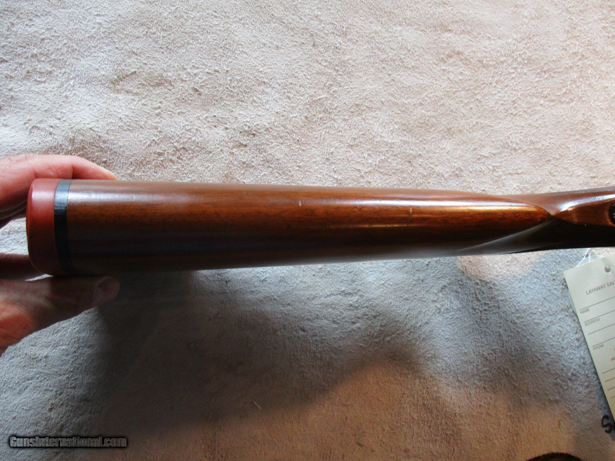 Description: Ruger M77 Tang safety, 300 Win mag, SN is 75-325xx, made in 1980. Factory finish on both wood and metal, factory rings included. Clean factory rifle! We will trade for silver and gold. has now started collecting tax for states that mandate it, if applicable they will add it to your total. Email me if you would like these pictures sent to you, they will come through bigger and better than on the listing page here. We do offer Layaway. Our standard terms are 25% down, 90 days. Initial deposit is not refundable. Email me with any questions. Please check your local laws to confirm it is legal to own in your state! Buyer pays $25 shipping and insurance to your FFL in the lower 48. AK, HI or PR is extra. I will ship to California, NO PROBLEM! All my guns come with a non-firing, 3 day unconditional return privilege, from the day UPS delivers to your dealer. Buyer pays shipping both ways if the gun comes back. I can add a new hard case by PLANO for secure shipping for $25 if the buyer wishes (highly recommended, cheap insurance, really helps keep the UPS monster from eating my guns!). Guns sold in Kansas are subject to Kansas sales tax. I am a licensed FFL, and will include a copy of my FFL with the gun for your dealer’s records. I will ship to a C&R if the gun is eligible. I will ship to California, but you need to confirm the gun is legal where you are, California or other. WE BUY AND CONSIGN GUNS AND GUN COLLECTIONS! We will travel to pick up collections! I am always looking for good clean, old original Winchesters to buy, consign, or trade, especially Pre '64's model 70's and model 54's. WE ALSO TRADE FOR CLASSIC CARS AND TRUCKS! We also trade for gold and silver. SOLD Rifle Caliber: .300 Winchester Magnum Manufacturer: Ruger Model: M77 Barrel Length: 24 Condition: Used |