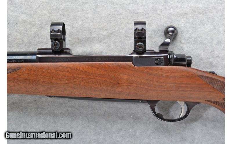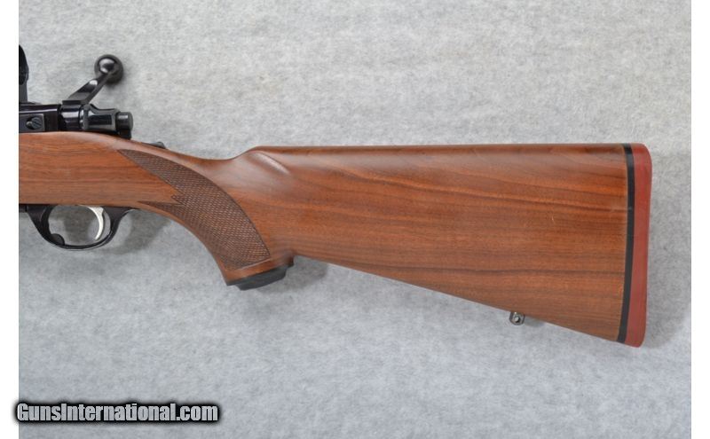 Description: SOLD Caliber Info: 7mm Rem. Mag. Chambers: Hinged floorplate. Metal Condition: Very good. Shows a little use and very minor wear. Wood Condition: Very good with handling marks. Bore Condition: Excellent. Barrels: 24 inches. Triggers: Adjustable. Stock: Checkered walnut pistol grip with a black Ruger cap. Stock Dimensions: LOP 13 5/8 inches. Fore End: Checkered walnut. Butt Pad: Ruger red rubber pad. Weight: 7 lbs. 11 oz. Sights: Scope rings attached. No iton sights. Extras: Sling Swivels attached, shows some finish loss to trigger guard Item Location: Short Pump, VA |