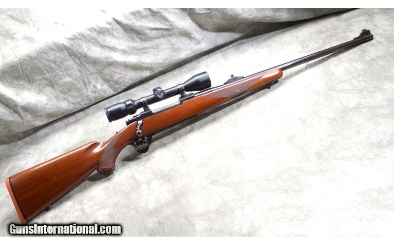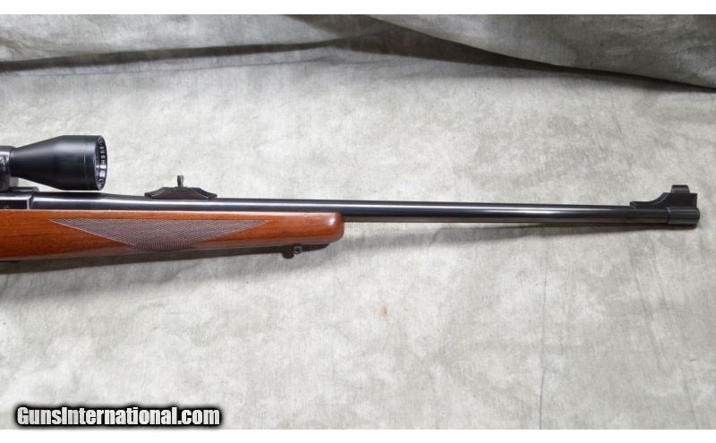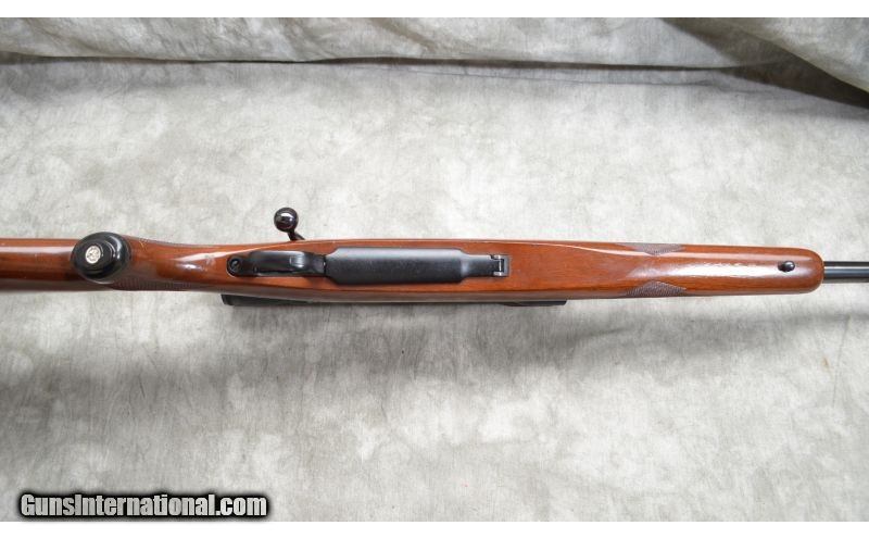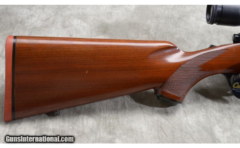 Description: This early model 77 features brass bead and folding leaf open sights, Bushnell scope, nice straight grain walnut stock, and well-maintained good condition. SOLD Manufacturer: 1974 based upon the S/N 70-94xxx Caliber Info: 7MM Remington Magnum. Chambers: 3 round internal magazine with hinged floor plate. Metal Condition: Excellent. A few very tiny handling marks. Wood Condition: Excellent. A few tiny handling marks. Bore Condition: Shiny and bright. Barrels: 24 inch - blue - medium contour, with open sights. Triggers: Factory trigger. Stock: Checkered walnut with pistol grip. Stock Dimensions: 13 - 5/8 Inch LOP. Butt Pad: Red rubber Ruger pad. Weight: 9 lb. - 4 oz. as shown with scope. Sights: Brass bead and folding leaf open sights. Set up for scope and outfitted with Bushnell 3-9x scope. Extras: Scope and bases. Item Location: Rogers,, MN |