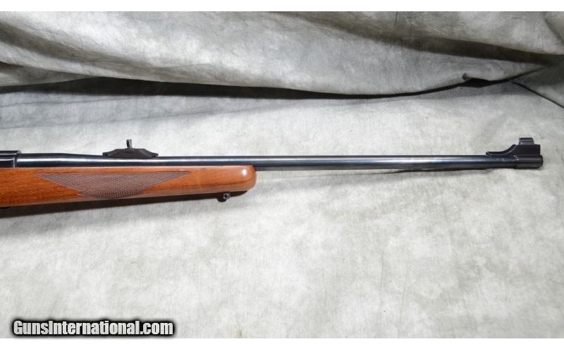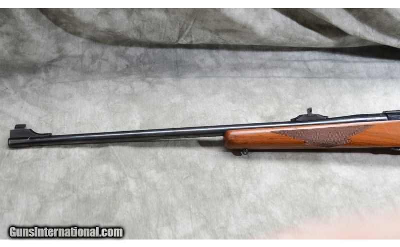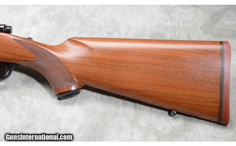 Description: This Ruger features checkered walnut pistol grip, grip cap, internal magazine with hinged floor plate and is set up with open sights and is drilled and tapped for scope. SOLD Manufacturer: 1978 based on the S/N 72-39xxx. Caliber Info: 7MM Remington Magnum. Chambers: Internal magazine with hinged floor plate. Metal Condition: Very good. Some bluing wear at the muzzle. Wood Condition: Very good. There are a number of fine scratches as well as a couple obvious ones on the left side. Bore Condition: Shiny and bright. Barrels: 24 inch - blue - medium contour, with open sights. Triggers: Factory trigger. Stock: Checkered walnut with pistol grip. Stock Dimensions: 13 - 5/8 Inch LOP. Butt Pad: Red Ruger pad. Weight: 7 lb. - 12 oz. Sights: Brass bead and notch open sights. Drilled and tapped for your choice of scope. Item Location: Rogers,, MN |