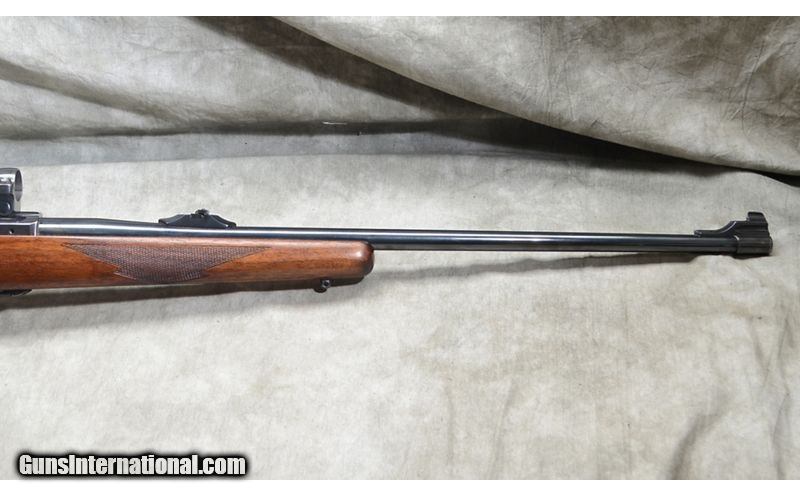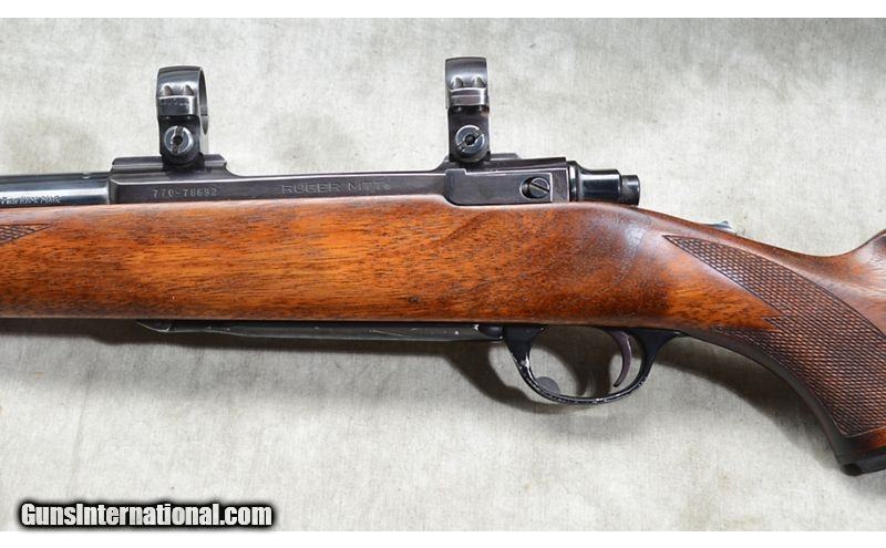 Description: Ruger M77 with nice walnut stock, "iron" sights, and set up for your choice of scope. YOM 1986 7mm Remington Magnum SOLD Chambers: 4 Metal Condition: Very good. Wear around the muzzle and on the floor plate. Wood Condition: Very good. Bore Condition: Shiny and bright with good rifling. Barrels: 24-inch Triggers: Factory trigger. Stock Dimensions: 13-3/4 inch LOP. Butt Pad: Rubber pad. Weight: 7 lb - 13 oz Sights: Gold bead and folding leaf open sights. Set up for your choice of scope. Item Location: Rogers |