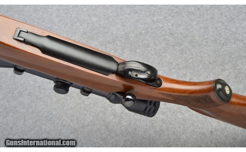 Description: 1976 production , pre-warning rifle shows scattered handling and few freckles. Barrel stamped "Made in the 200th year of American Liberty". Controlled round feed, very good bore. 7x57 Mauser SOLD Metal Condition: Blued Wood Condition: Checkered Walnut Bore Condition: Bright Barrels: 22 Inch Tapers Triggers: Adjustable Stock Dimensions: 13 3/4" LOP Butt Pad: Ruger Red Pad Weight: 8 lbs 14 ozs Sights: Simmons 3-10 X 44 Scope Item Location: Buda, TX |