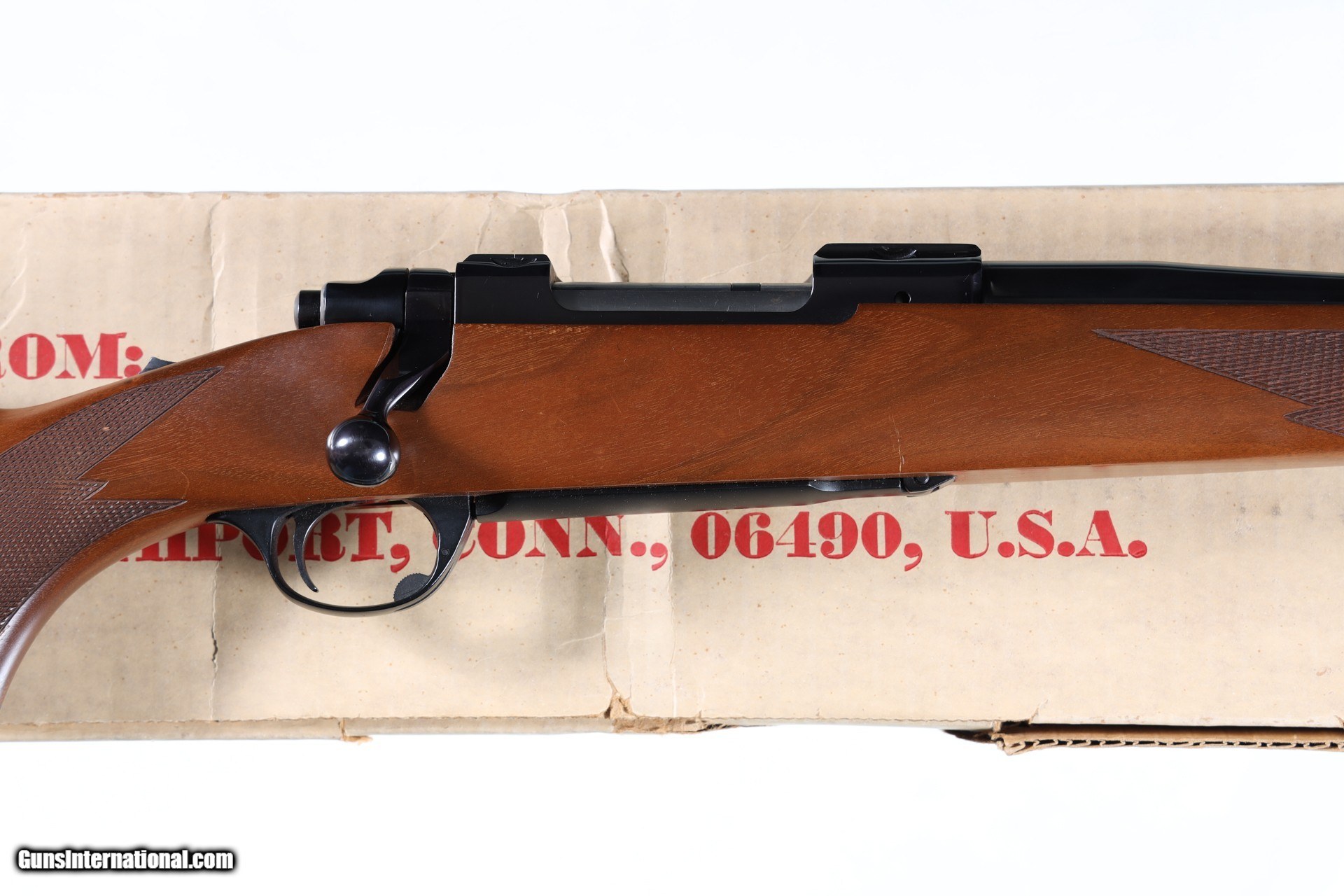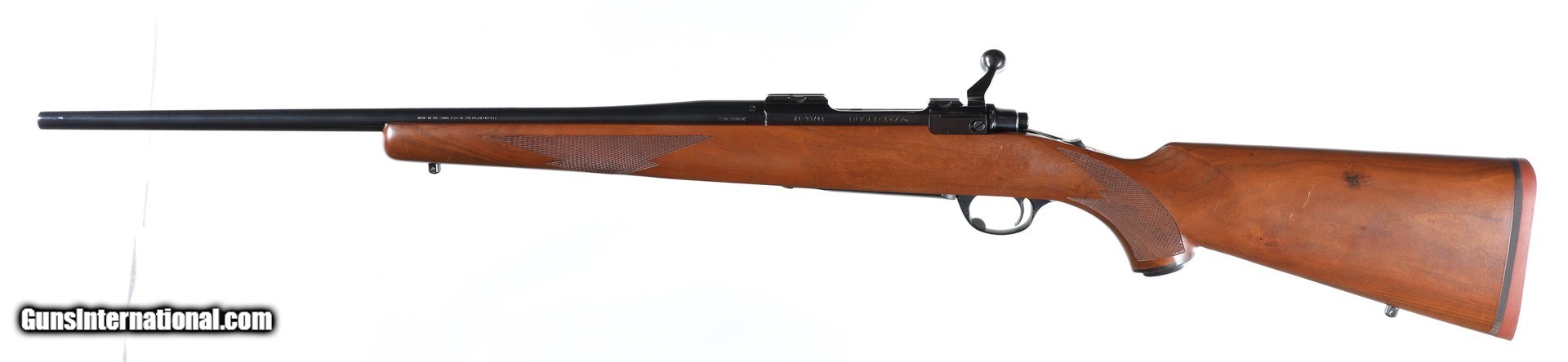 Description: Excellent overall condition, minimal light handling marks to wood. Red pad, round knob, tang safety. Manufactured in 1976. With original box. • Free Shipping, No Credit Card Fees. • Lay-a-way available for this firearm. • 1/3 Down, a 1/3 in 30 Days 1/3 in 60 Days. SOLD Manufacturer: Ruger Model: M77 Serial Number: 71-93741 Barrel Length: 22 |